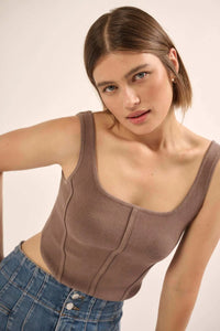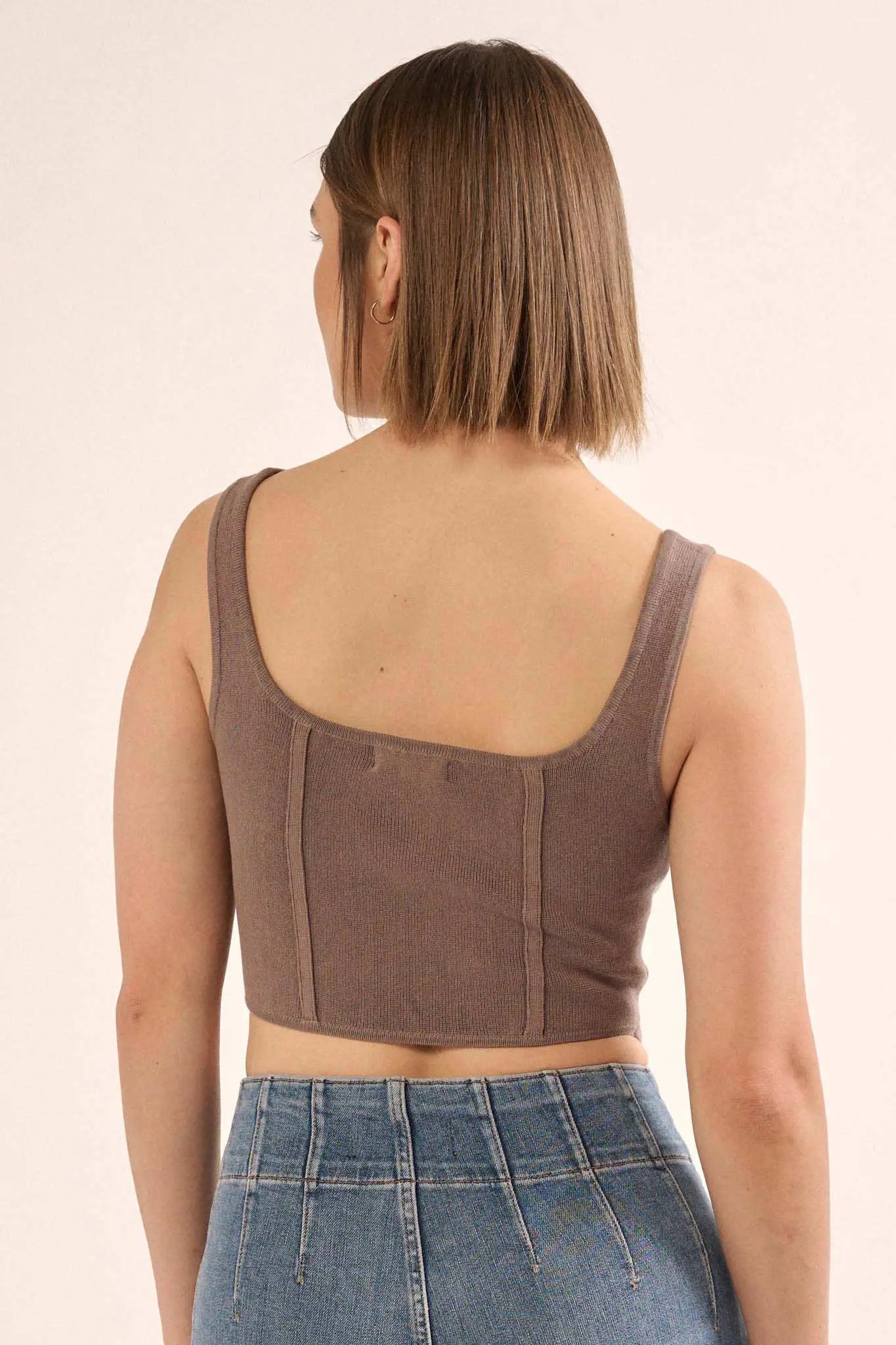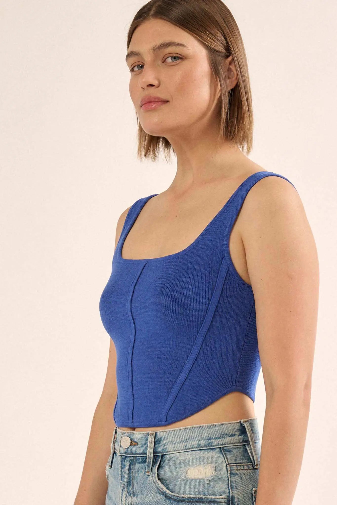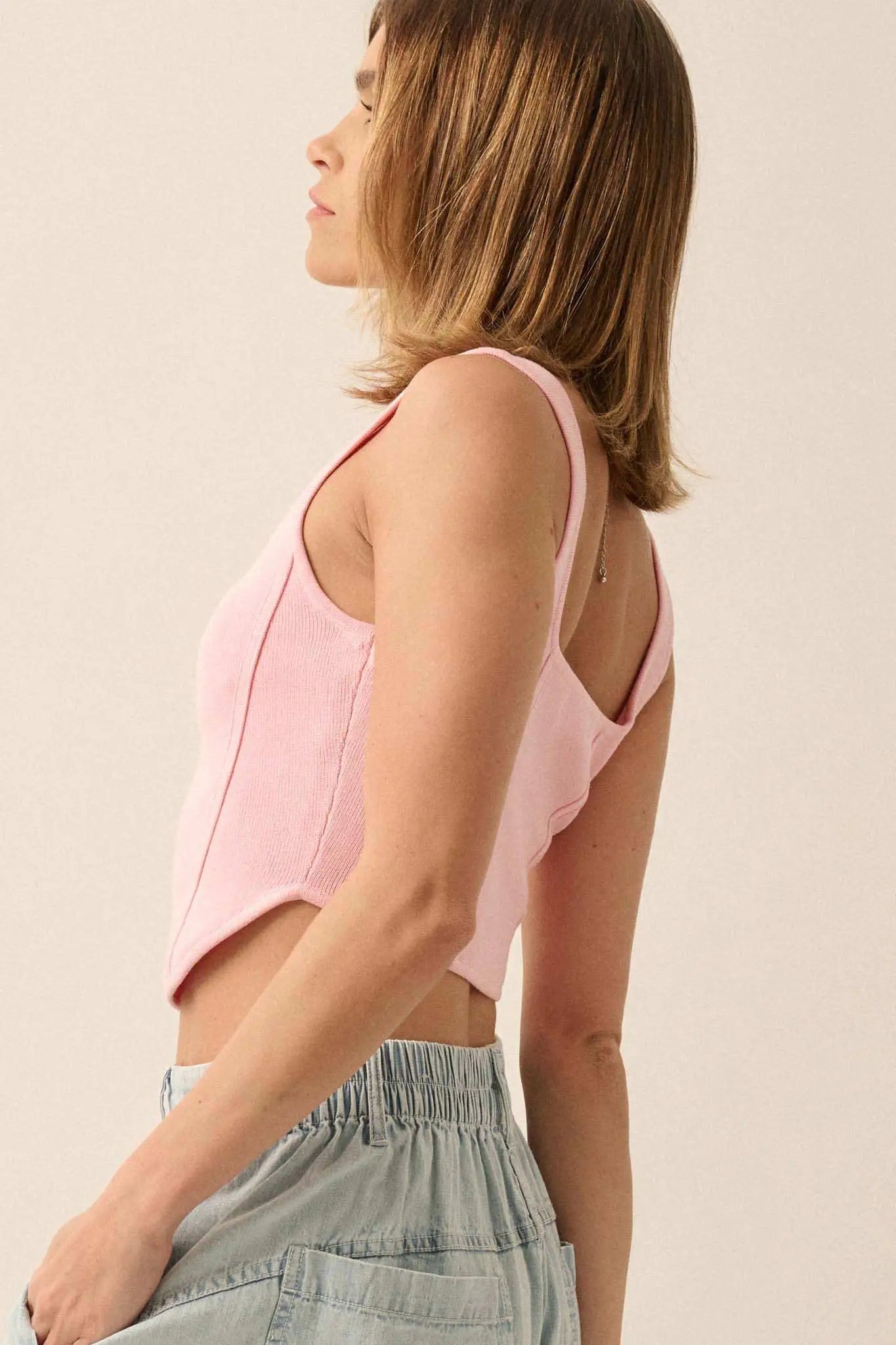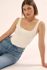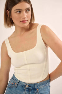 Shaper Fit Square Neck Rib-Knit Corset Tank Top
