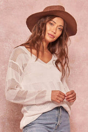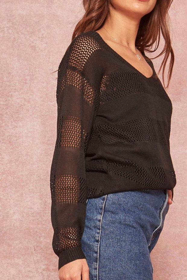 Outside the Lines Striped Fuzzy Knit Crop Sweater