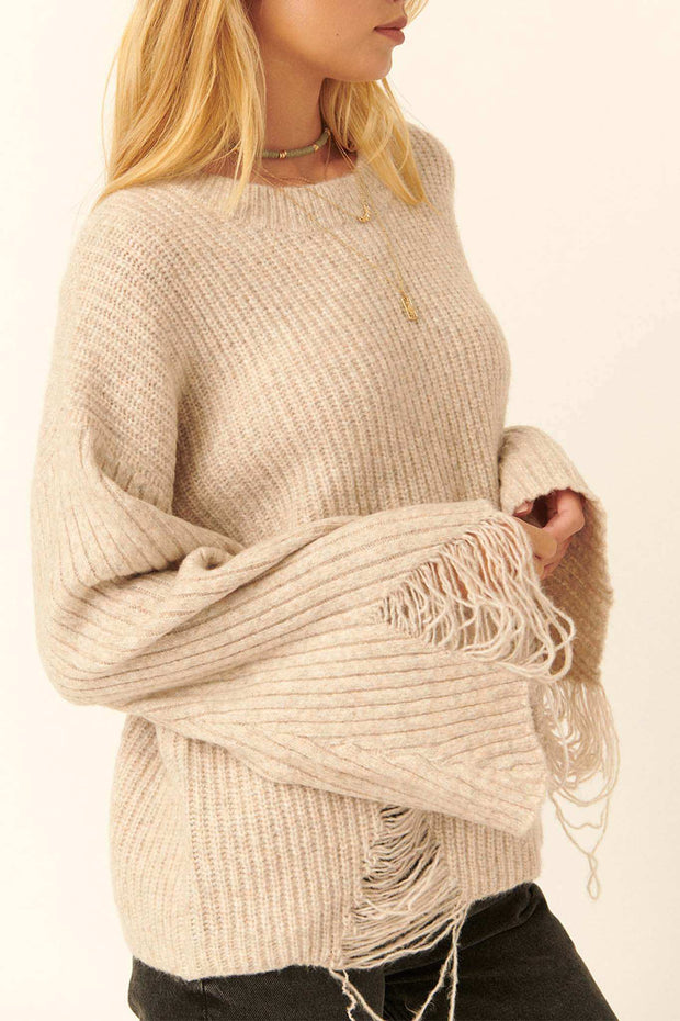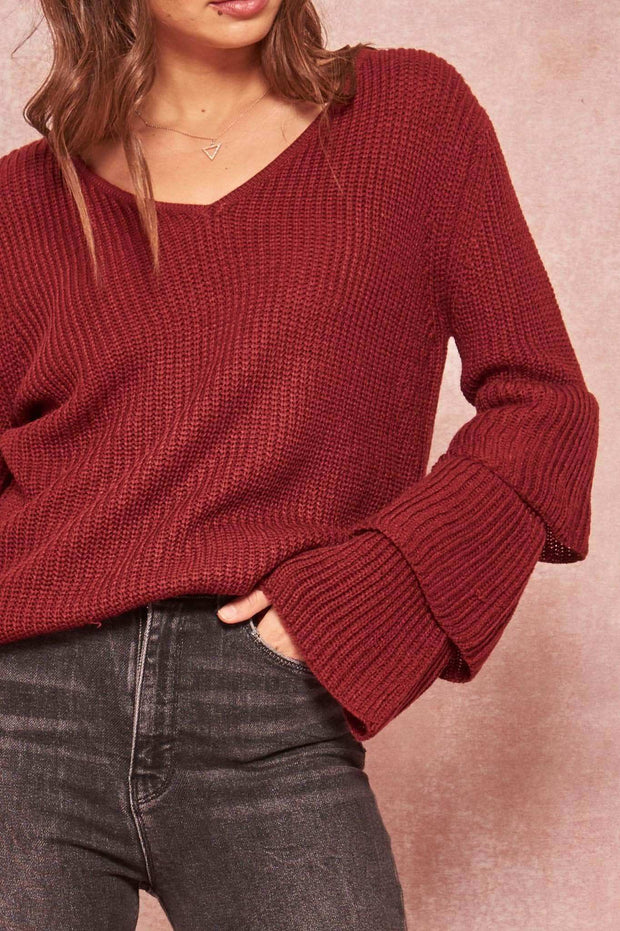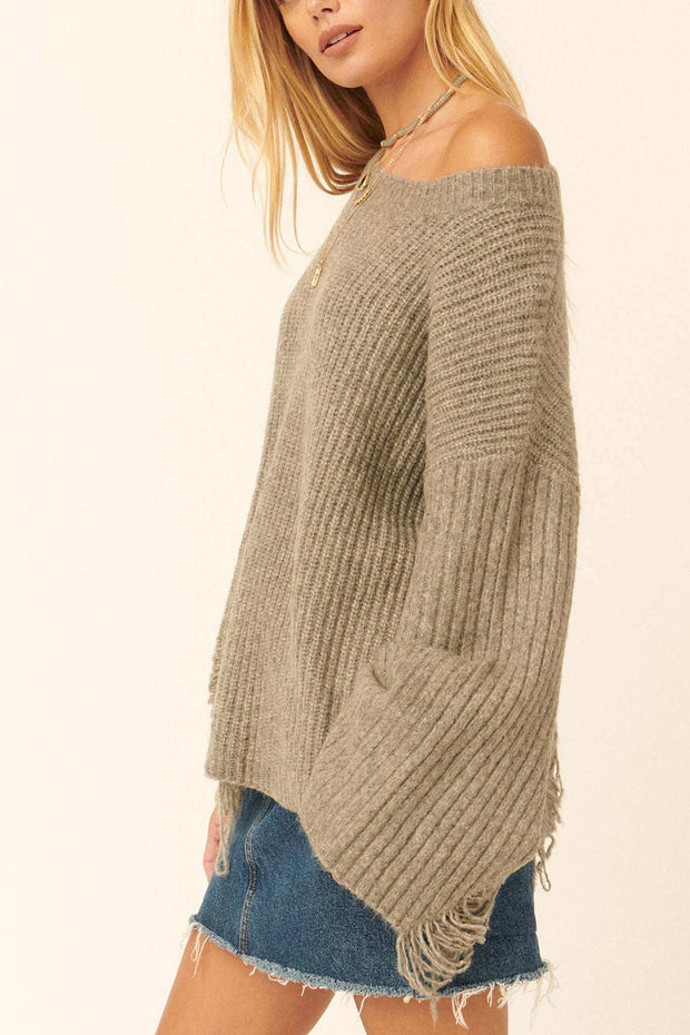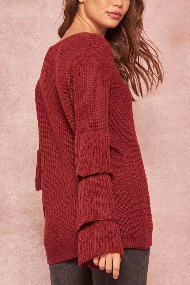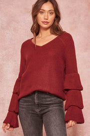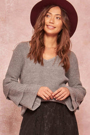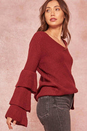 New Wave Wavy Stripe Bell-Sleeve Sweater