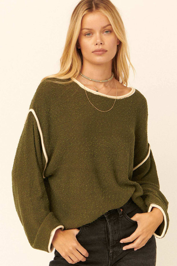 Best Life Exposed-Seam Ribbed Knit Sweater