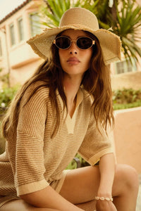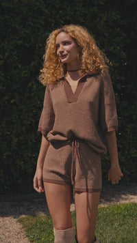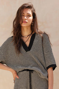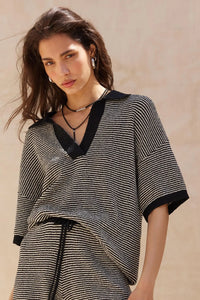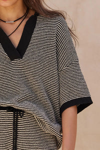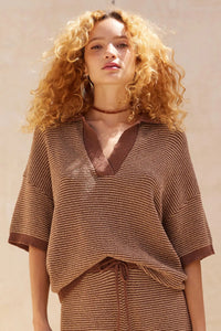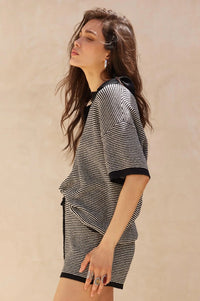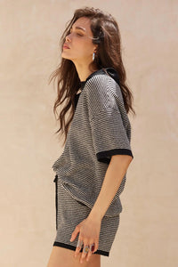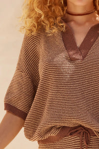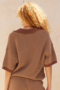 Days of Joy Striped Short-Sleeve Polo Sweater - ShopPromesa