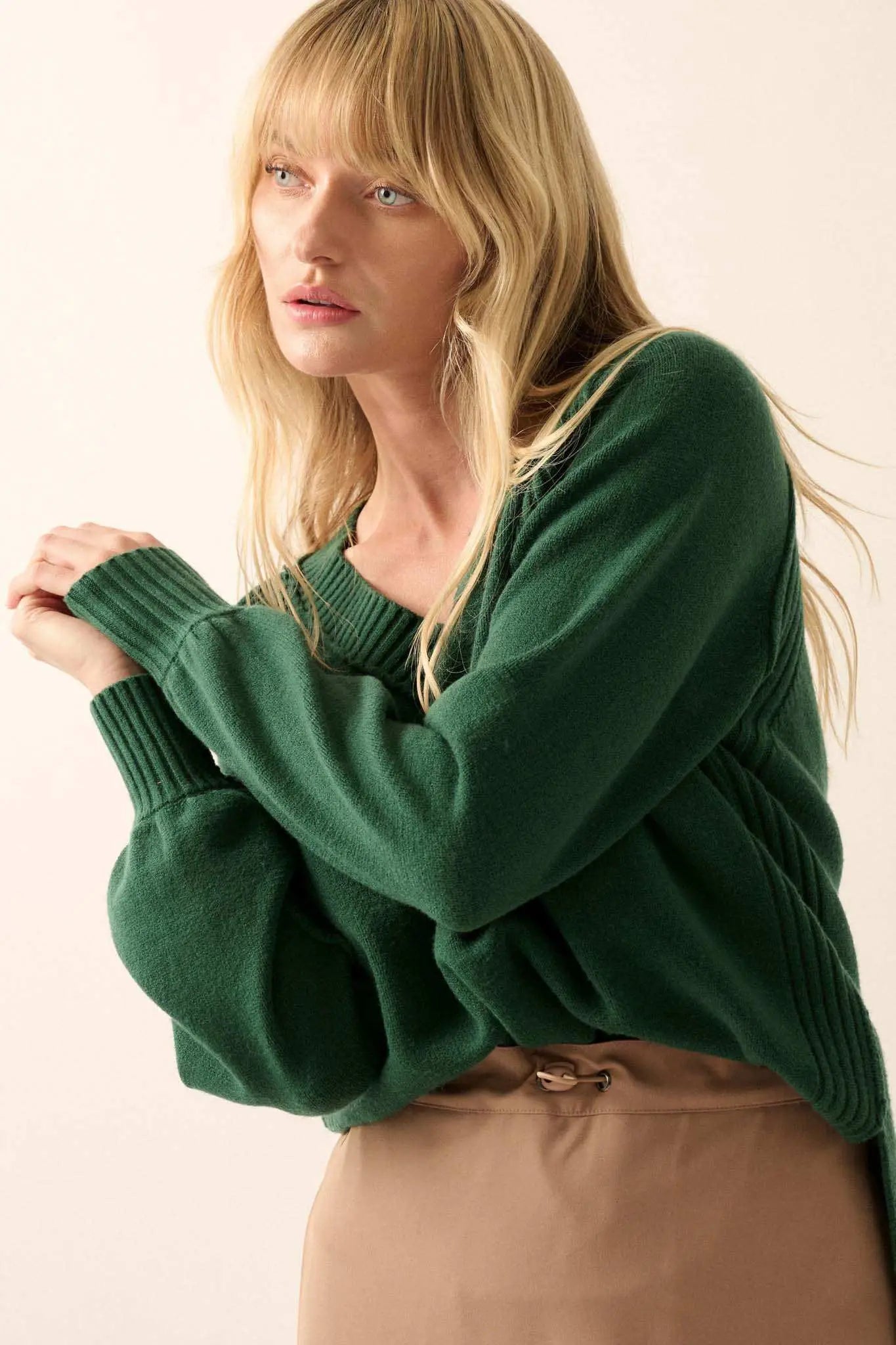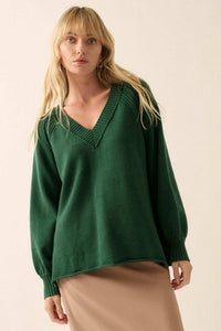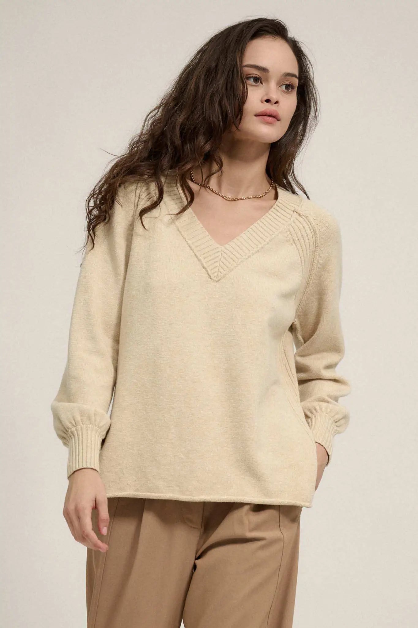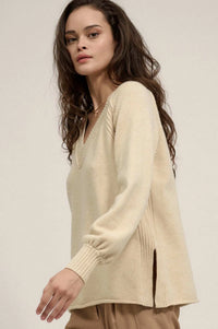 Morning Song Ribbed Knit Detail V-Neck Sweater