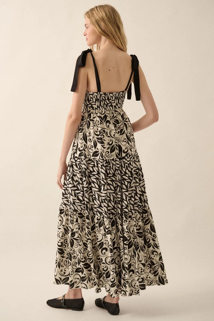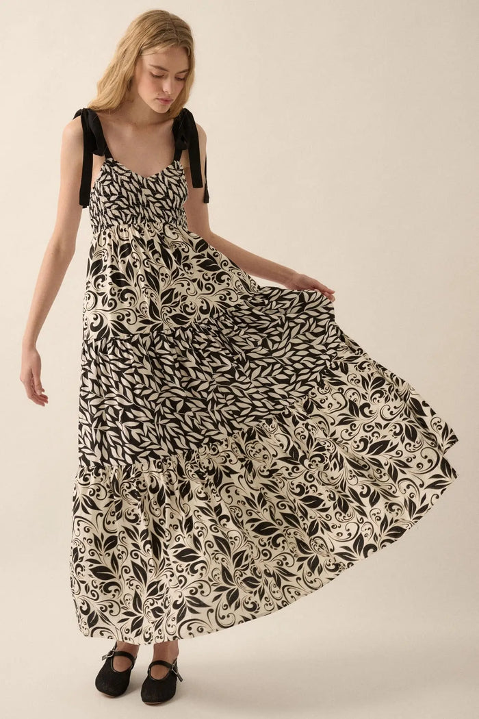 Delicate Blossoms Smocked Floral Chiffon Midi Dress