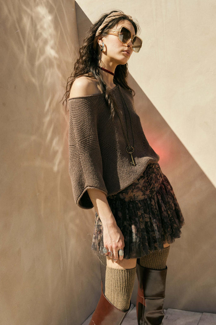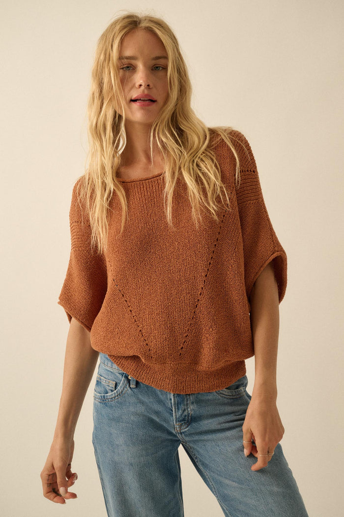 True Self Short-Sleeve Pointelle Rib-Knit Sweater