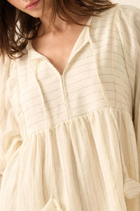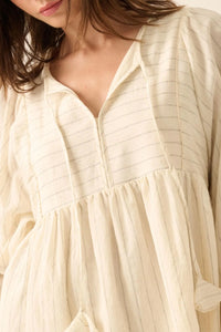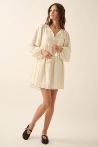 Breezy Belle Pinstripe Babydoll Peasant Mini Dress