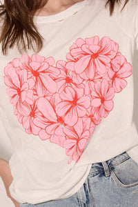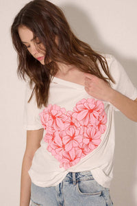 Love in Bloom Flower Heart Distressed Graphic Tee