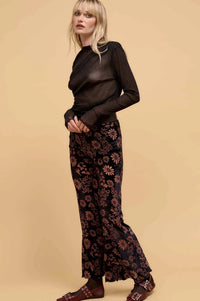 Daisy Delight Floral Burnout Velvet Flare Pants