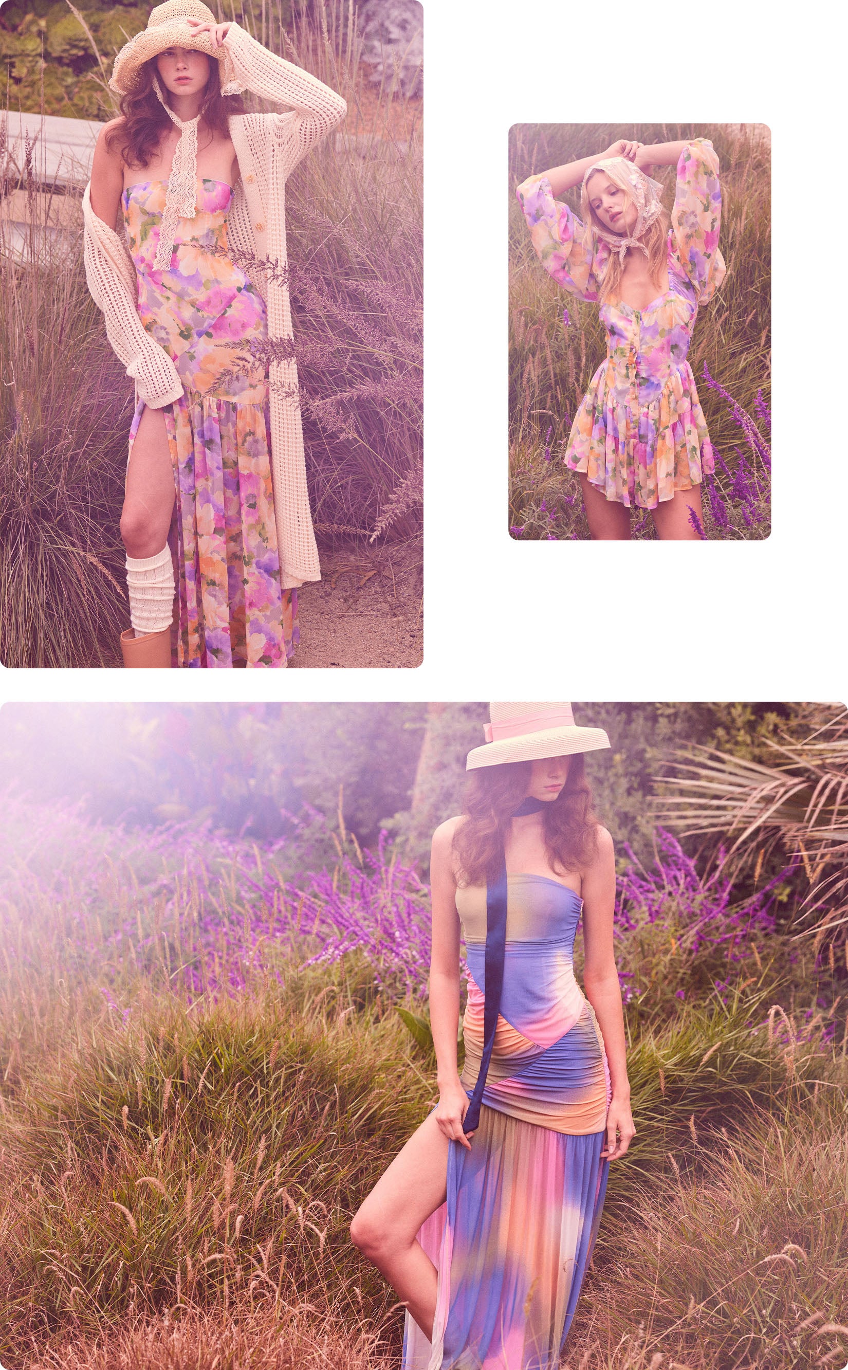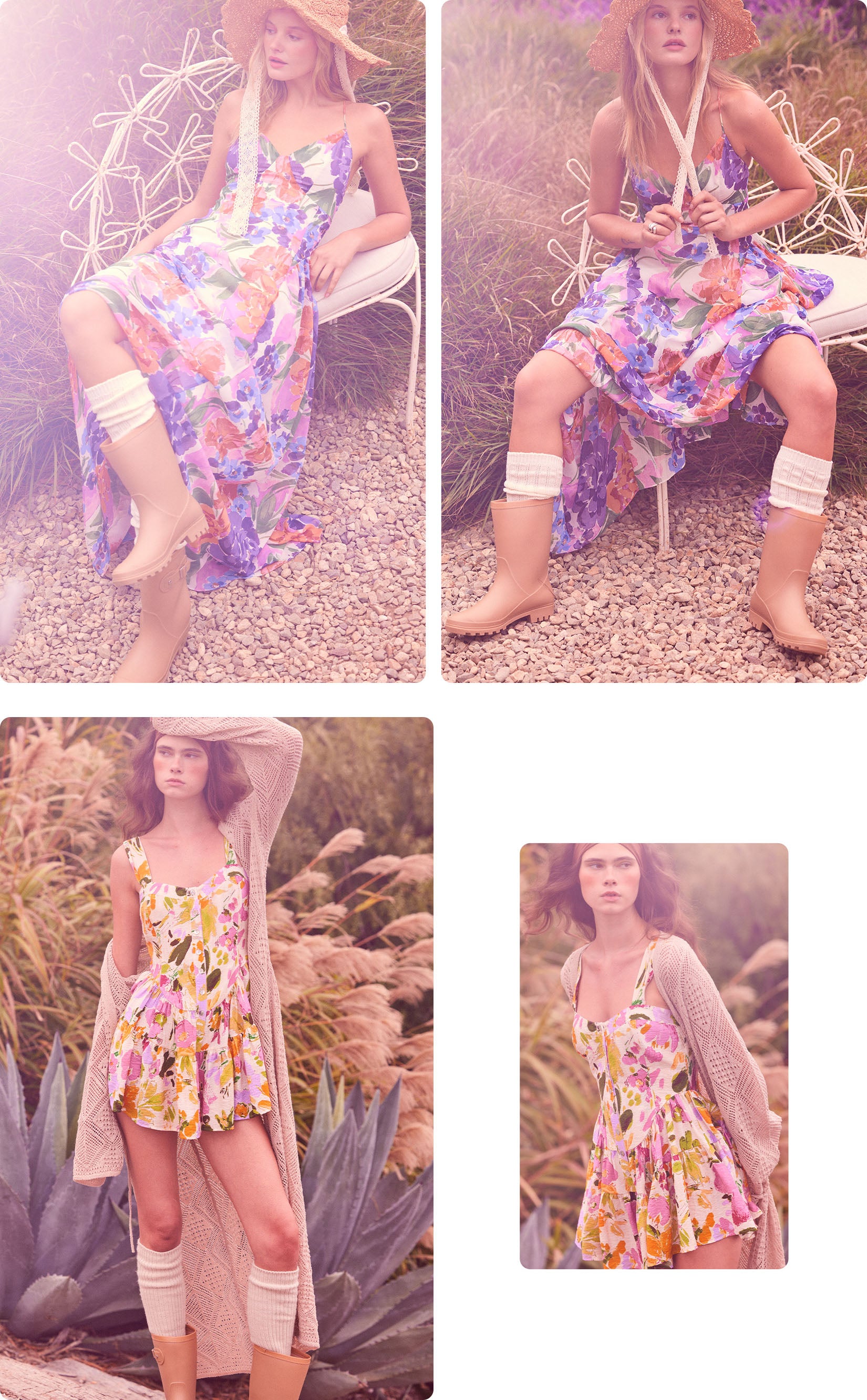 Wandering Rose Smocked Floral Chiffon Midi Dress