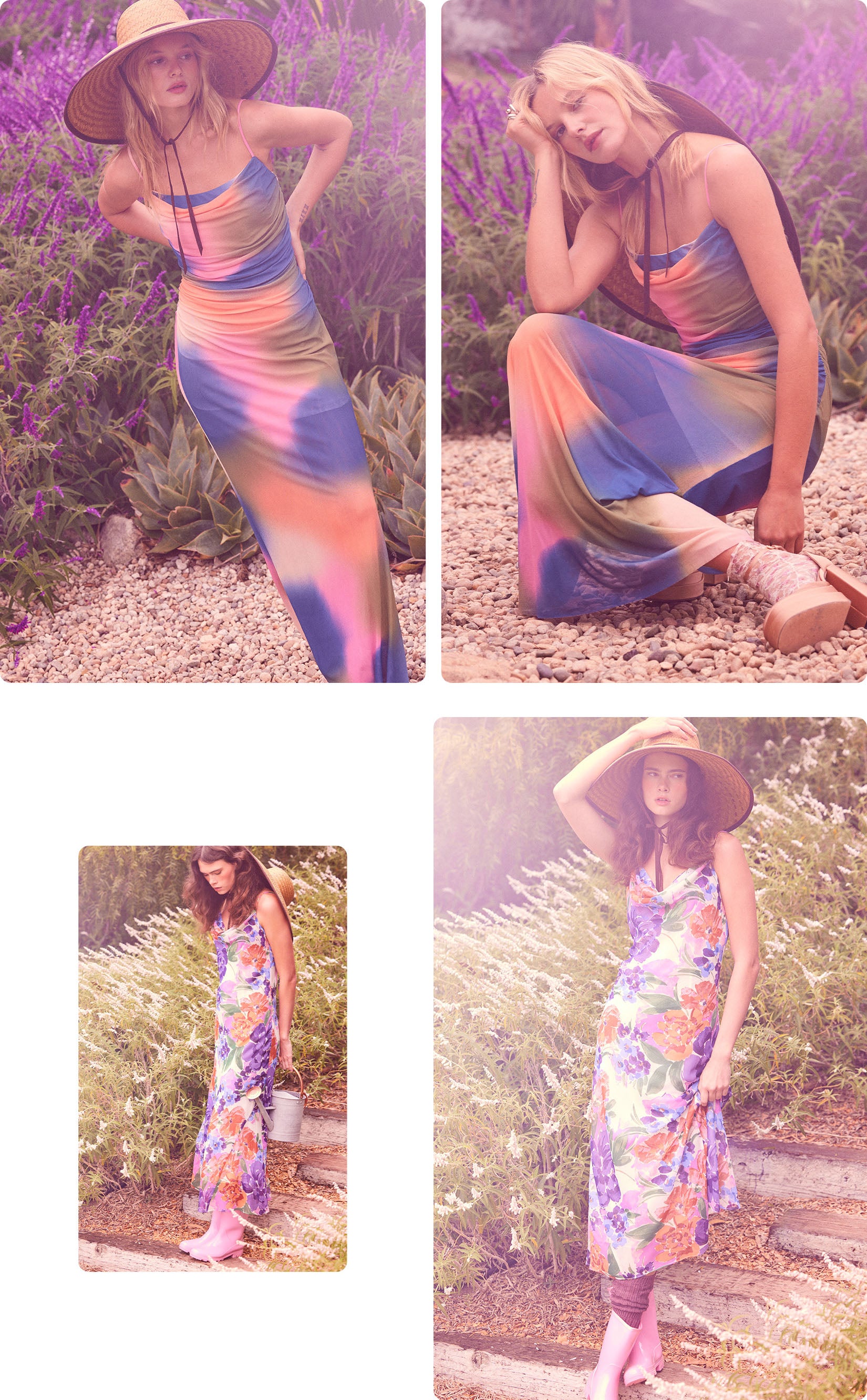 Wildflower Glen Floral Velvet-Trim Maxi Dress