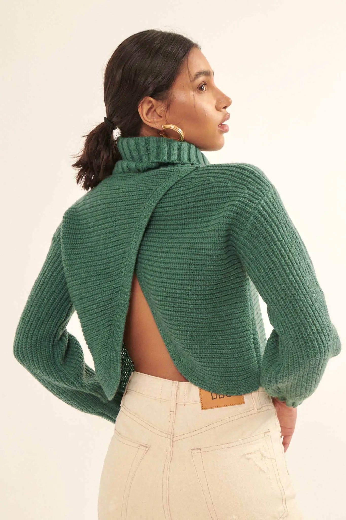 Back to You Surplice-Back Turtleneck Sweater - ShopPromesa