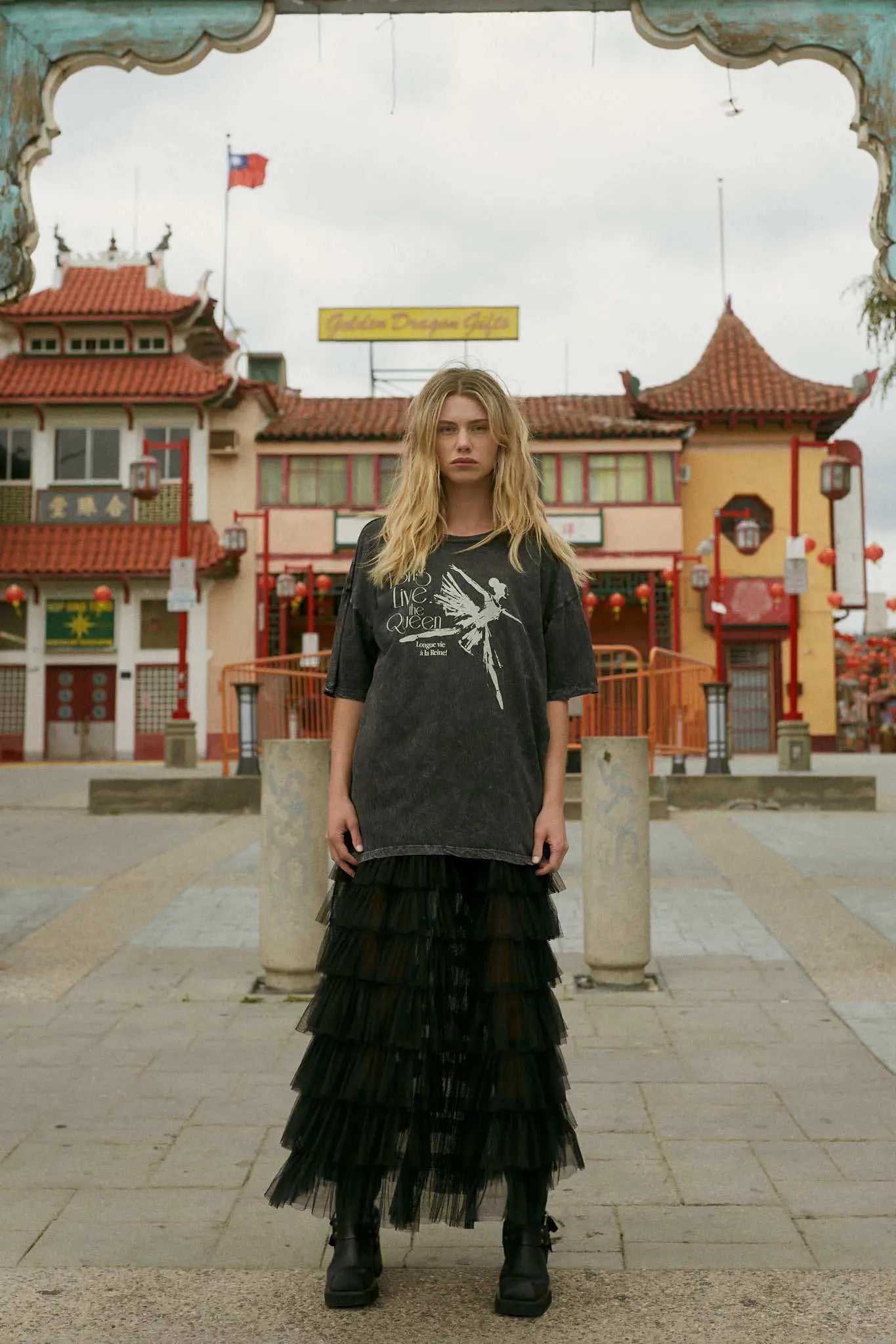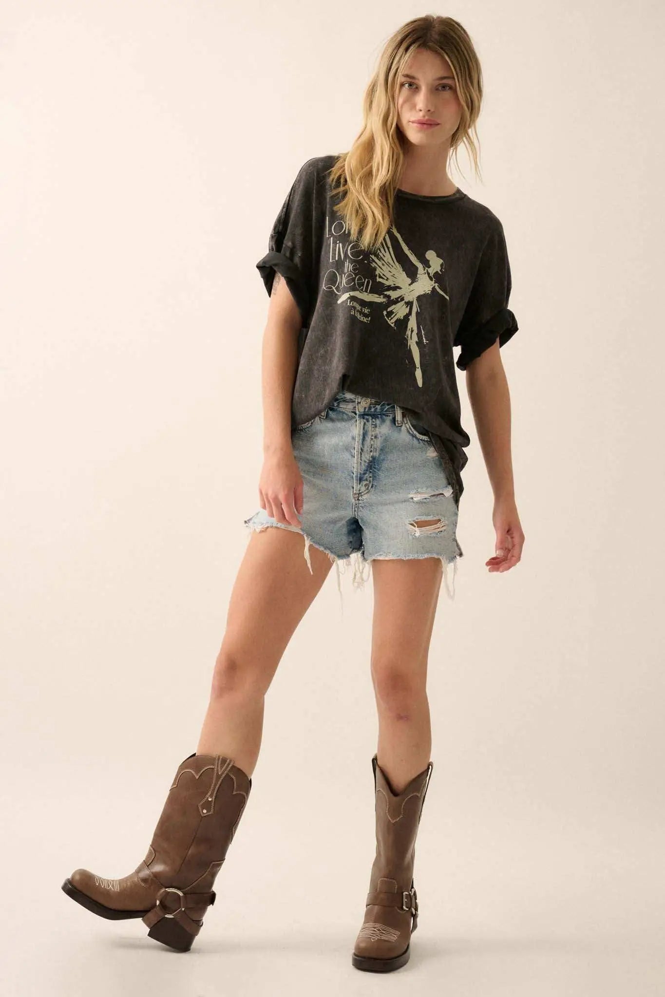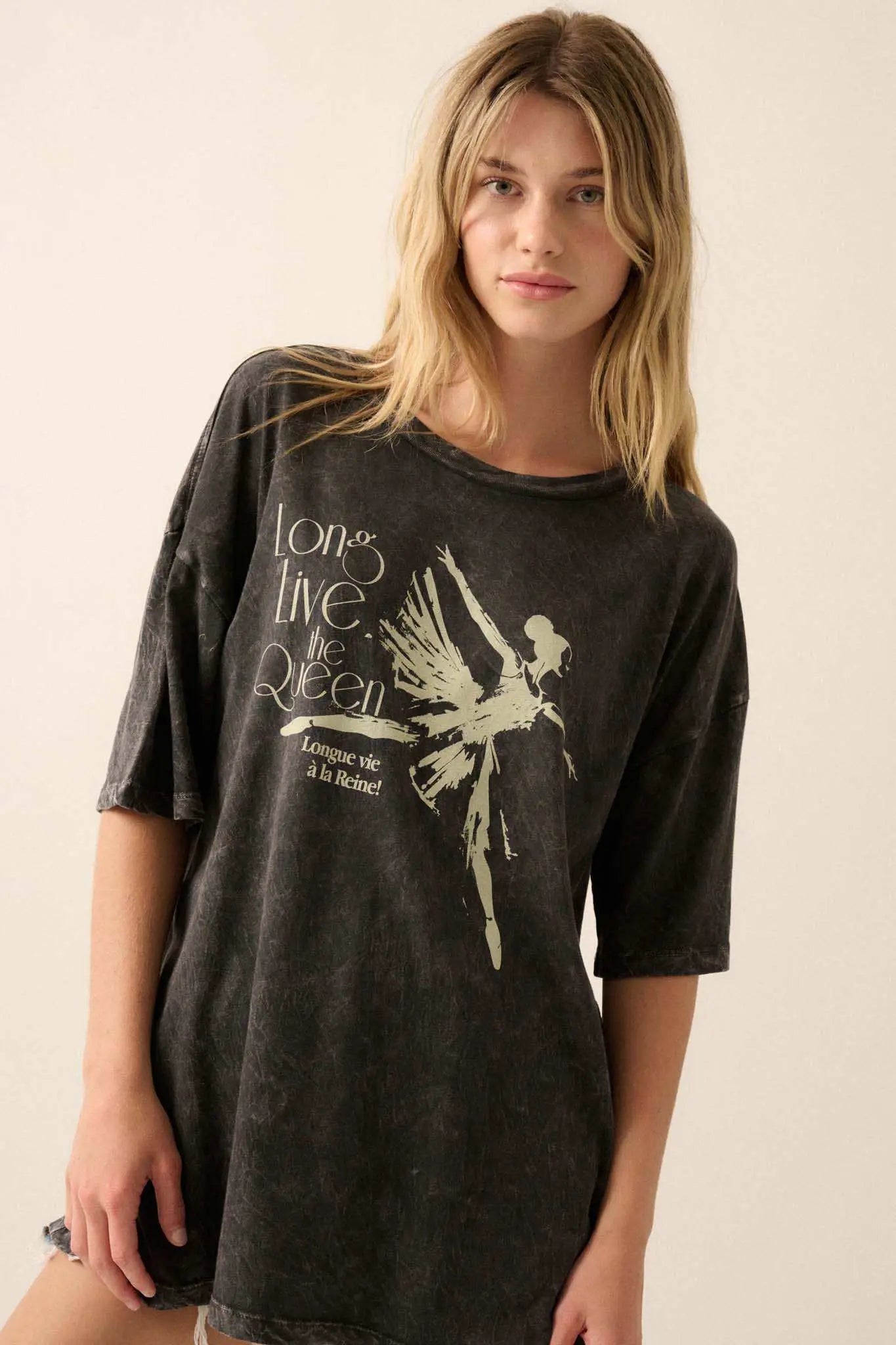 Ballerina Queen Vintage-Wash Oversize Graphic Tee