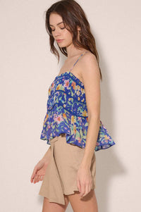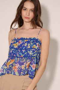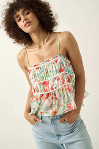 - Floral-print chiffon cami top.