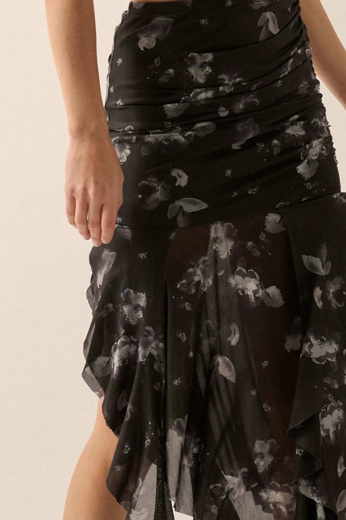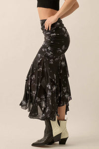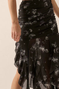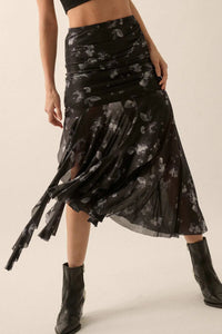 Blooming Shadows Floral Mesh Drop-Waist Midi Skirt - ShopPromesa