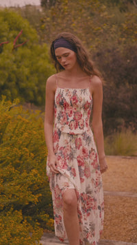 Blooming Valley Floral Mesh Smocked Maxi Dress