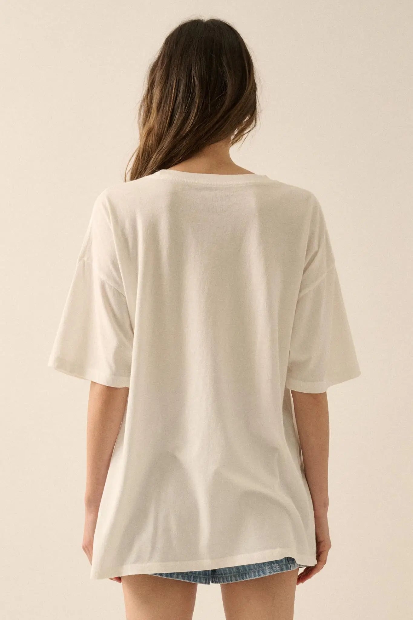 Blue Birds Vintage-Print Oversize Graphic Tee