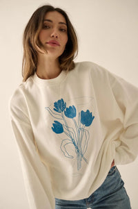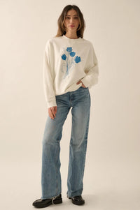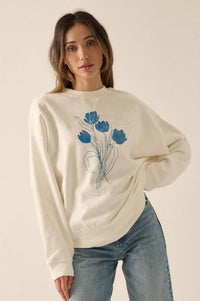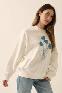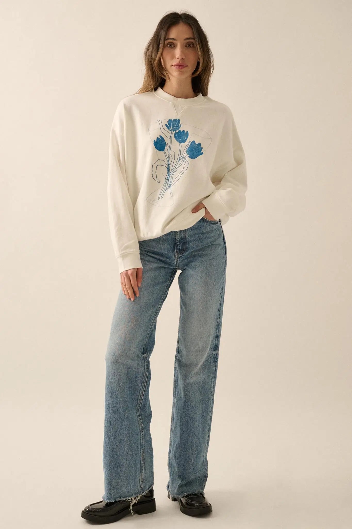 Blue Bouquet Vintage-Print Graphic Sweatshirt