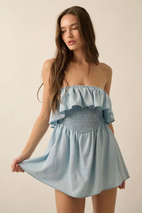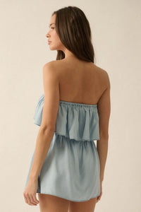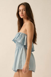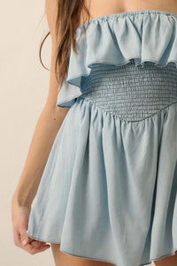 Blue Zone Denim Strapless Flounce Romper - ShopPromesa