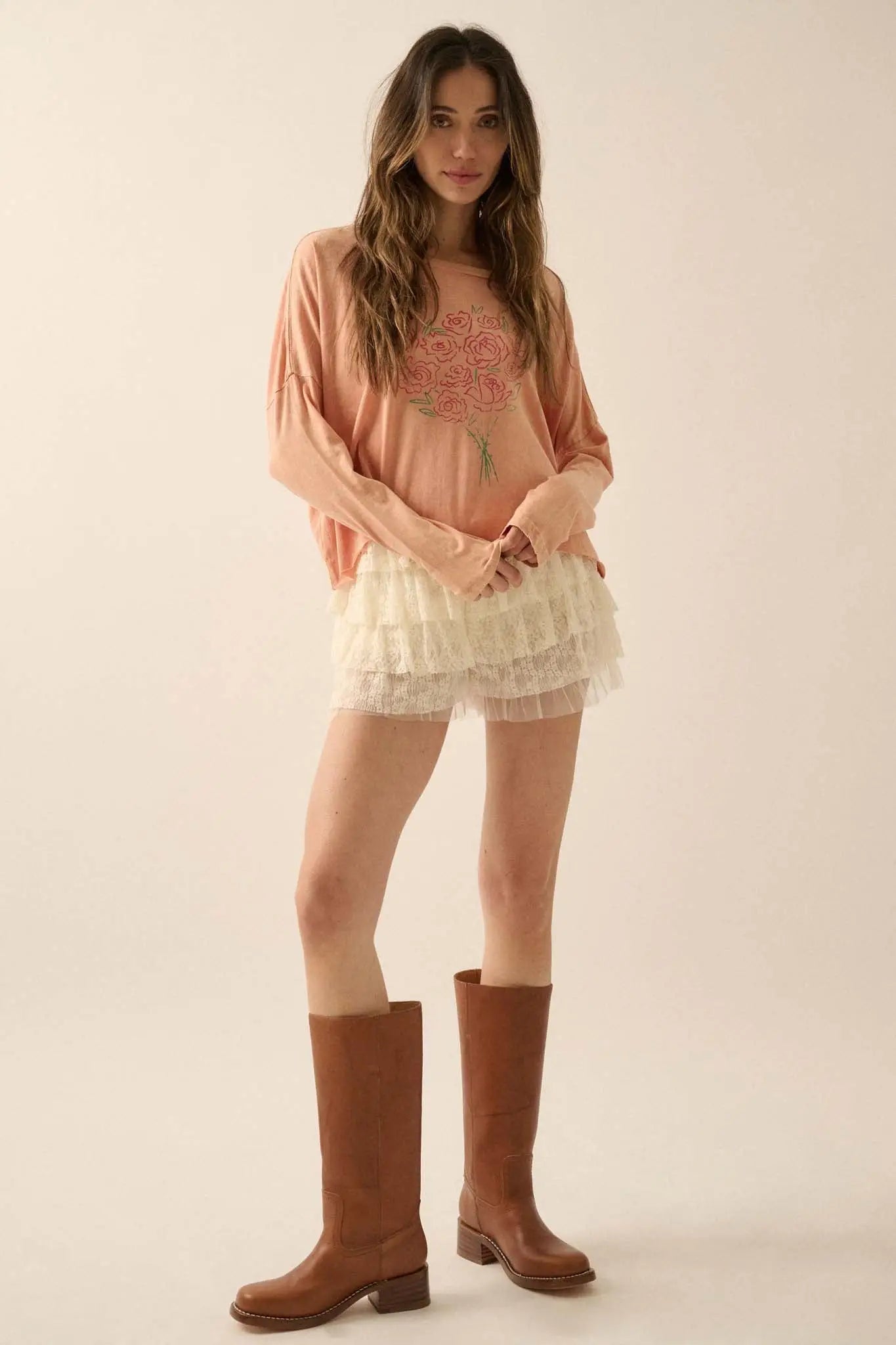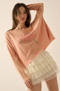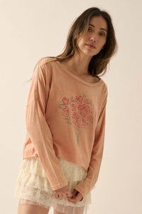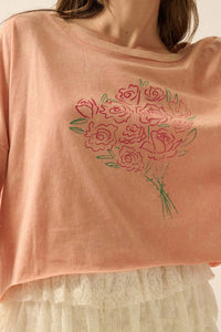 Bouquet of Roses Cropped Long-Sleeve Graphic Tee