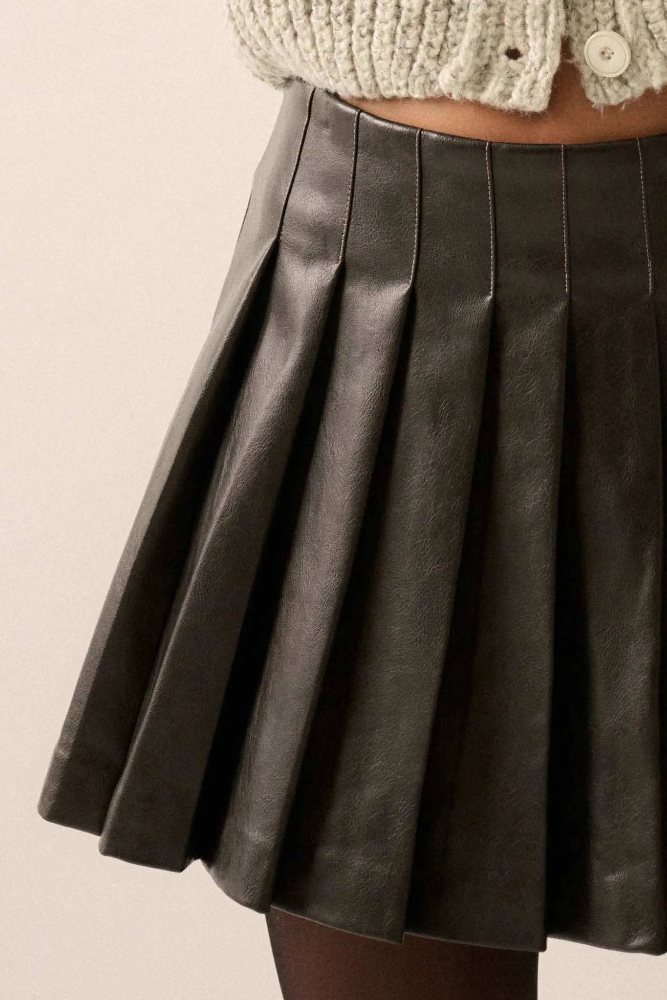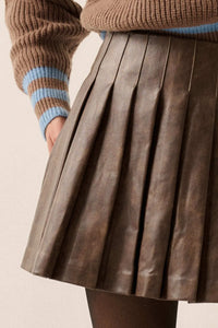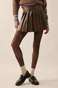 Brat Attack Pleated Vegan Leather Mini Skirt