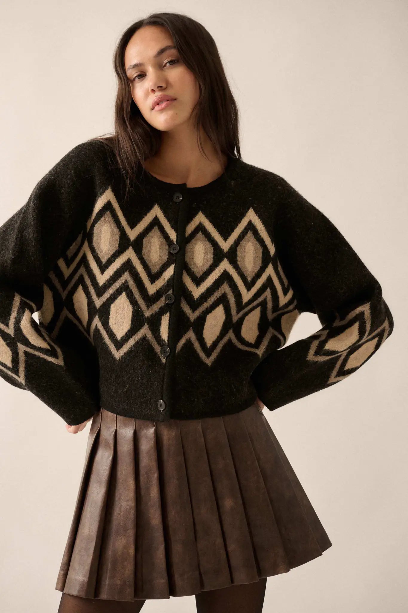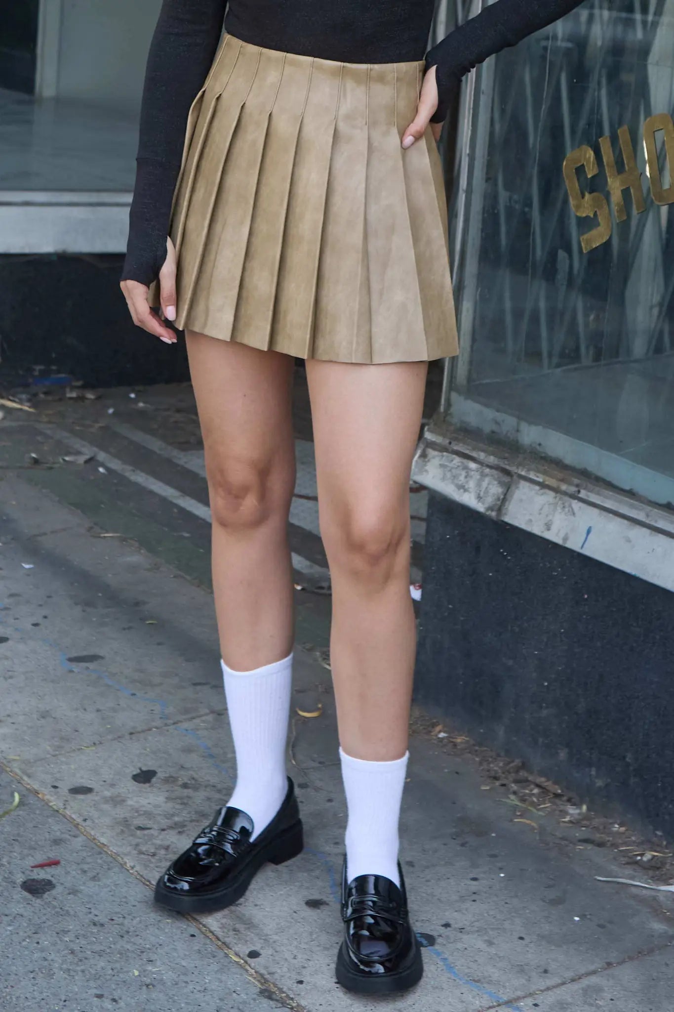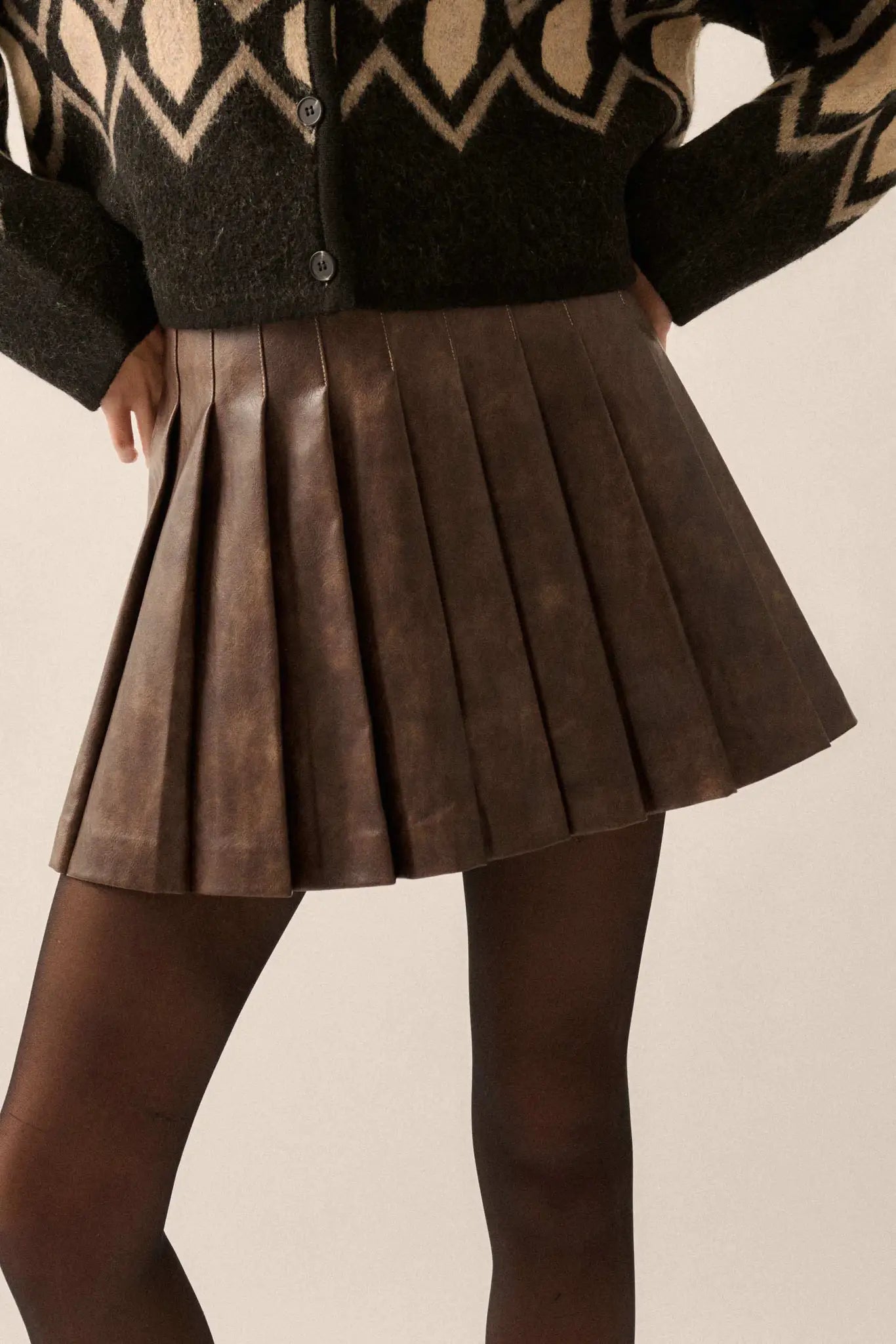 - Faux leather mini skirt.