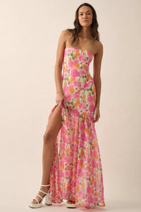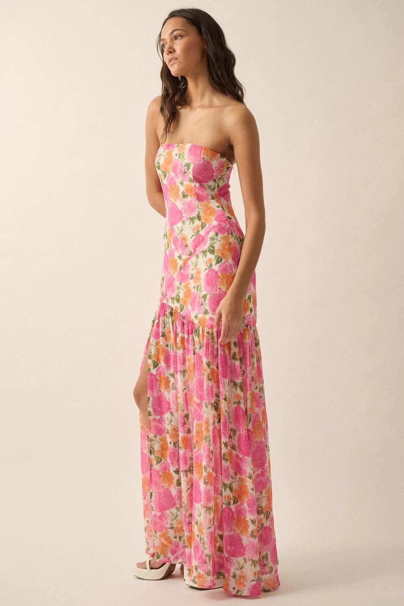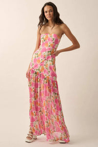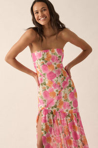 Bright Buds Strapless Floral Drop-Waist Maxi Dress - ShopPromesa