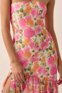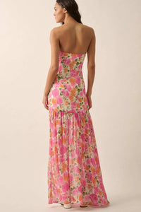 Bright Buds Strapless Floral Drop-Waist Maxi Dress