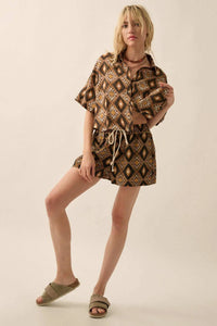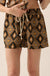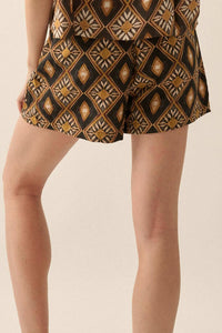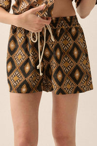 Bronze Bouquet Geometric Floral Drawstring Shorts