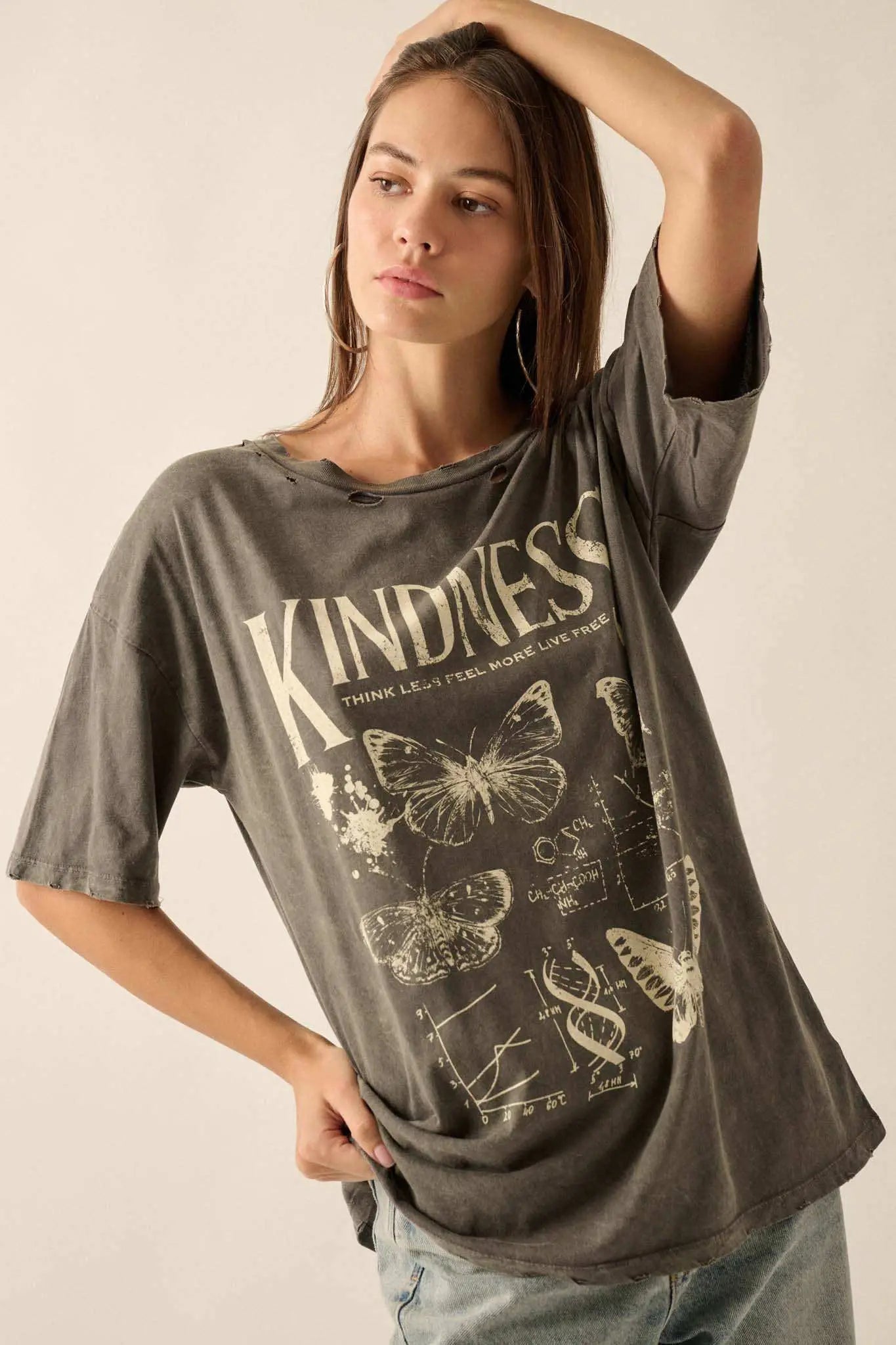 Butterfly Kindness Distressed Oversize Graphic Tee - ShopPromesa