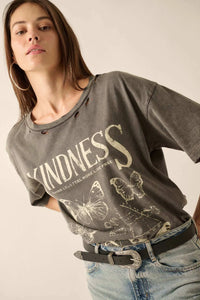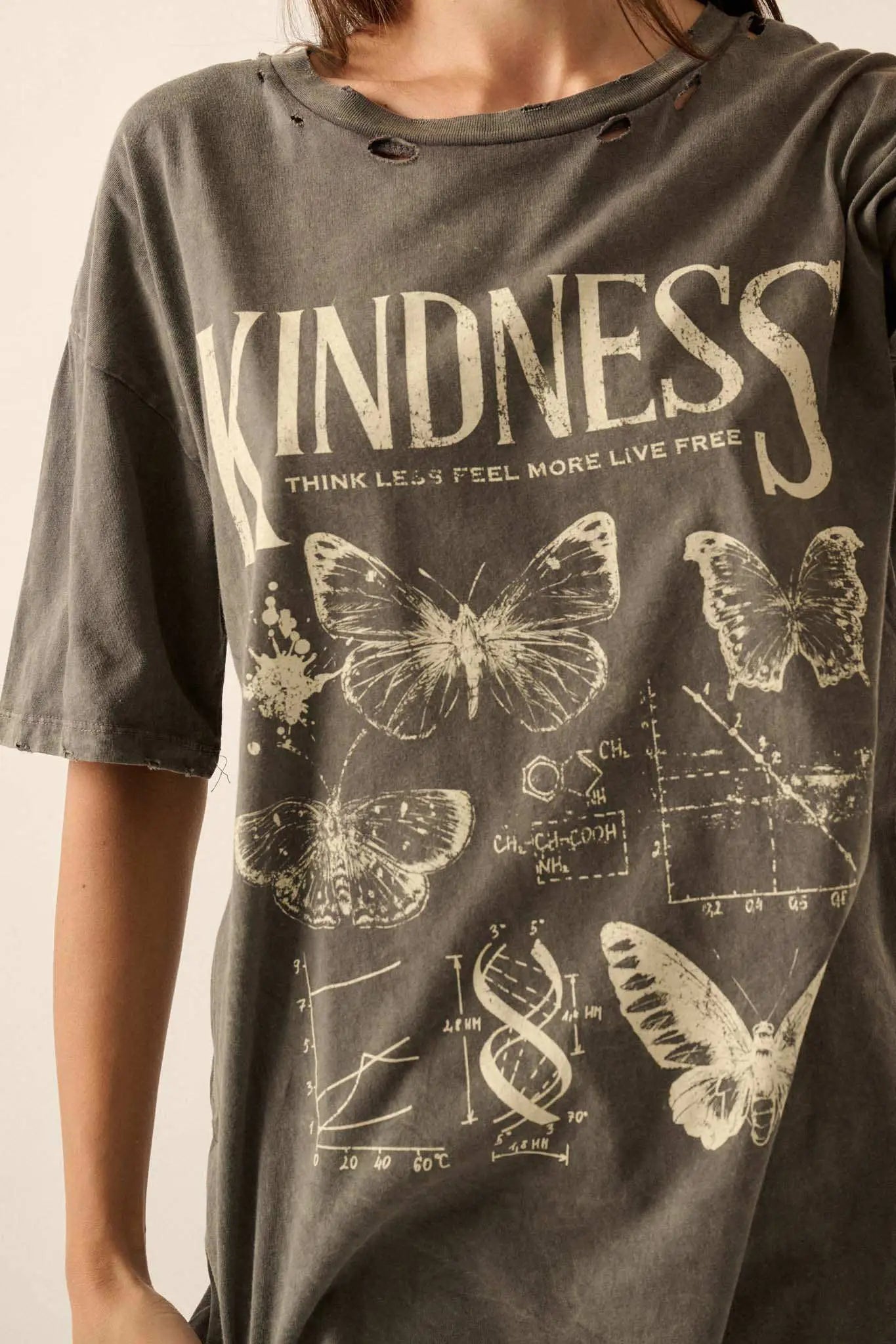 Butterfly Kindness Distressed Oversize Graphic Tee