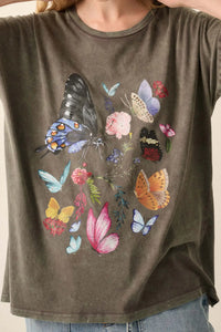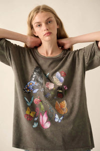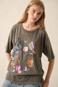 Butterfly Meadow Vintage-Wash Oversize Graphic Tee