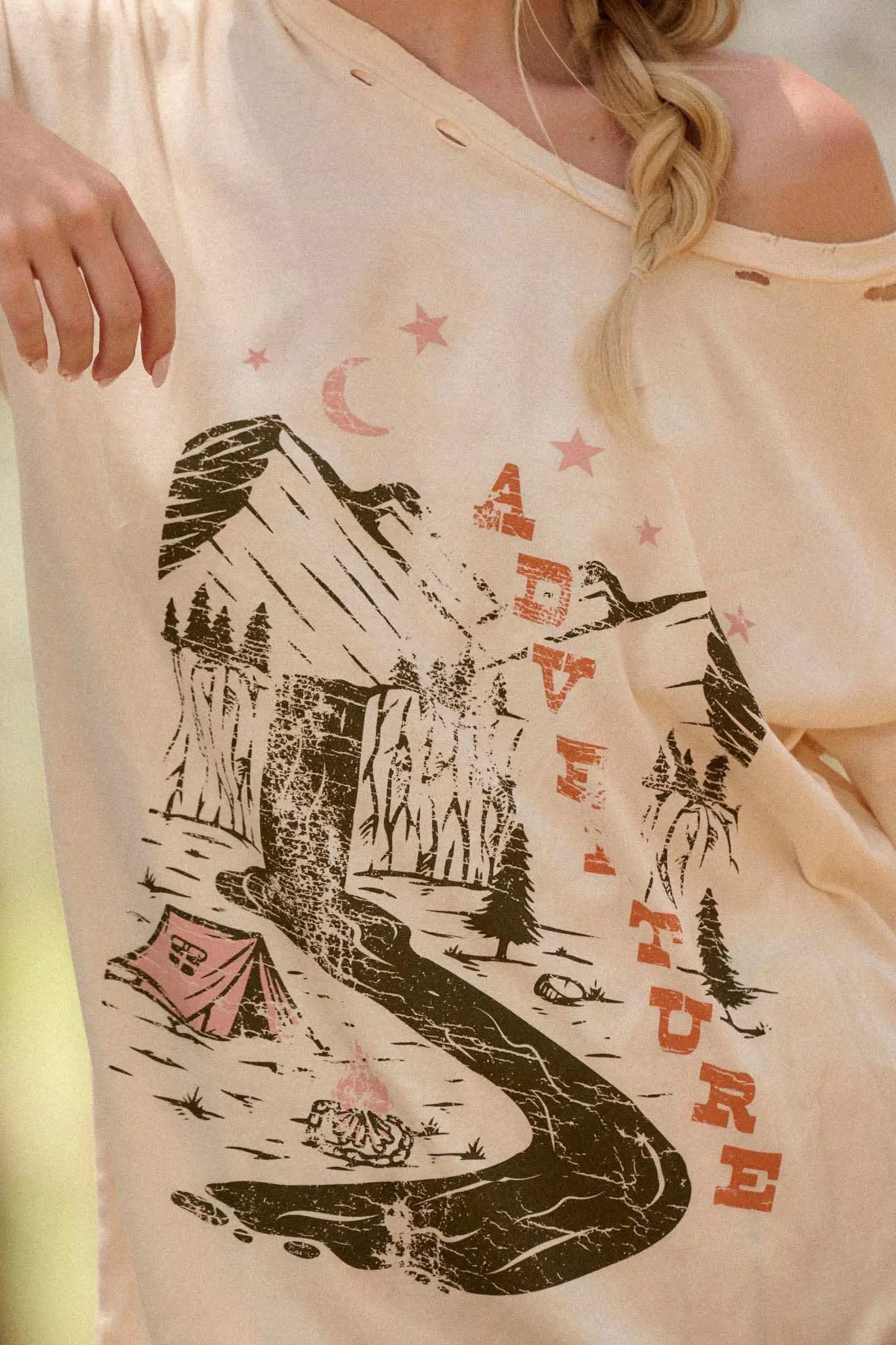 Camping Adventure Distressed Oversize Graphic Tee - ShopPromesa