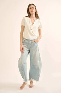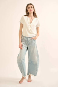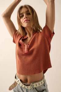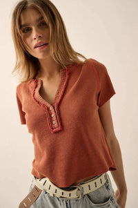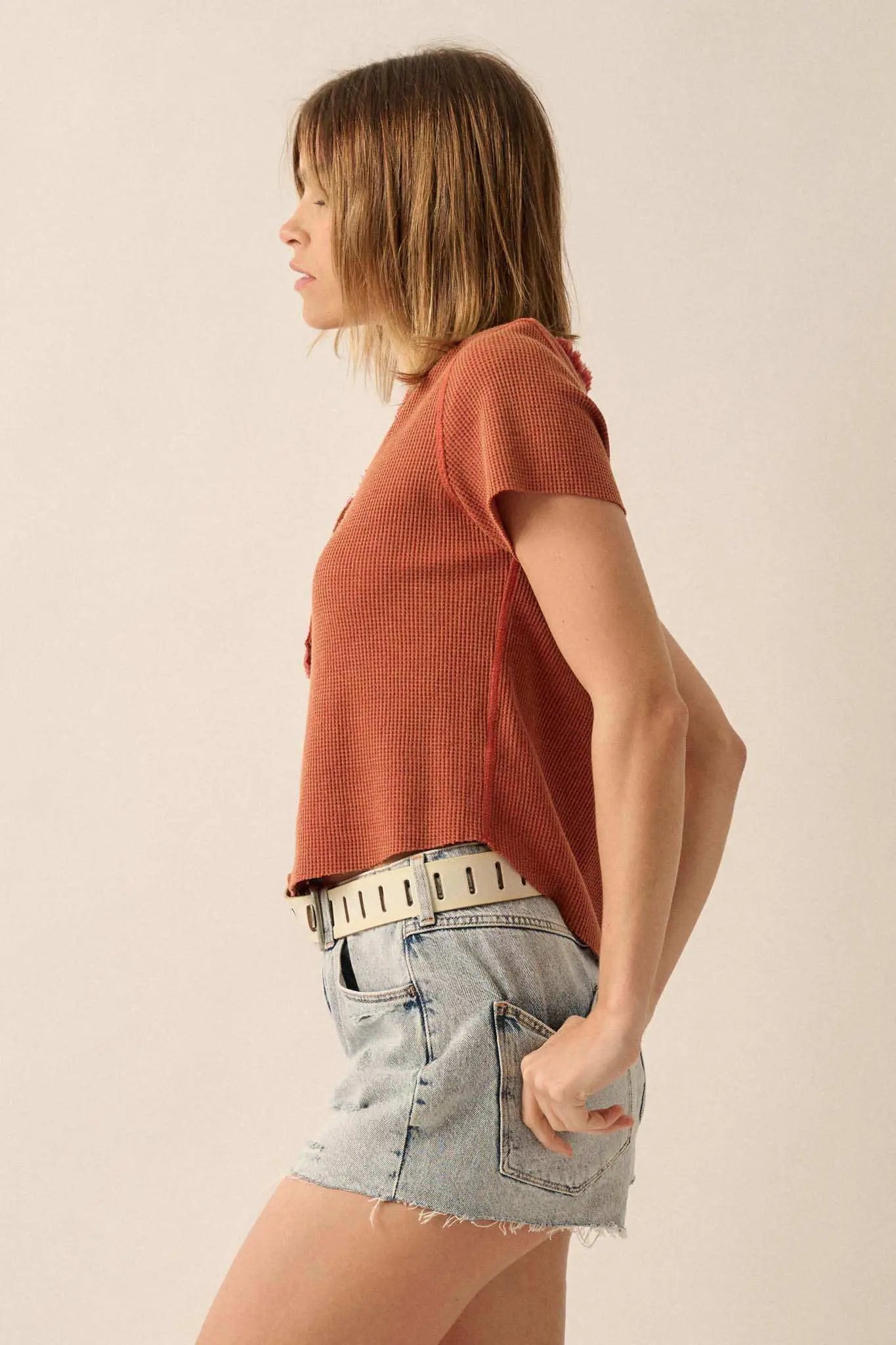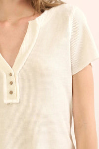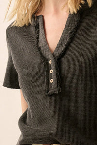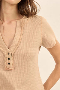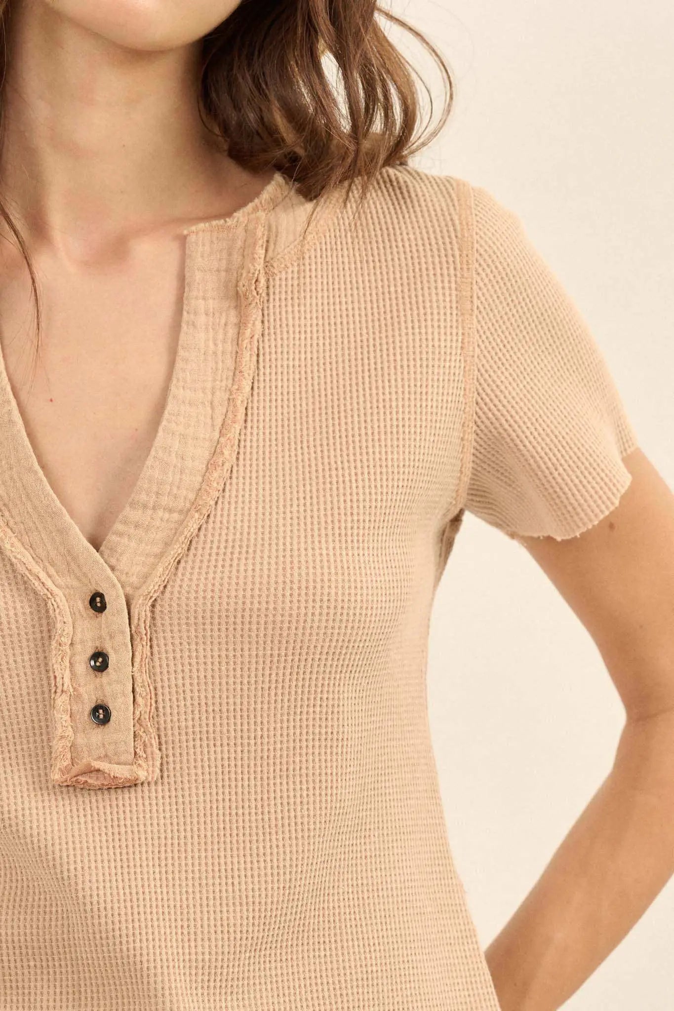 Casually Cool Waffle Knit Raw-Edge Henley Tee