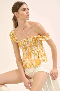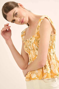 Catch the Sun Smocked Floral Peplum Tank Top