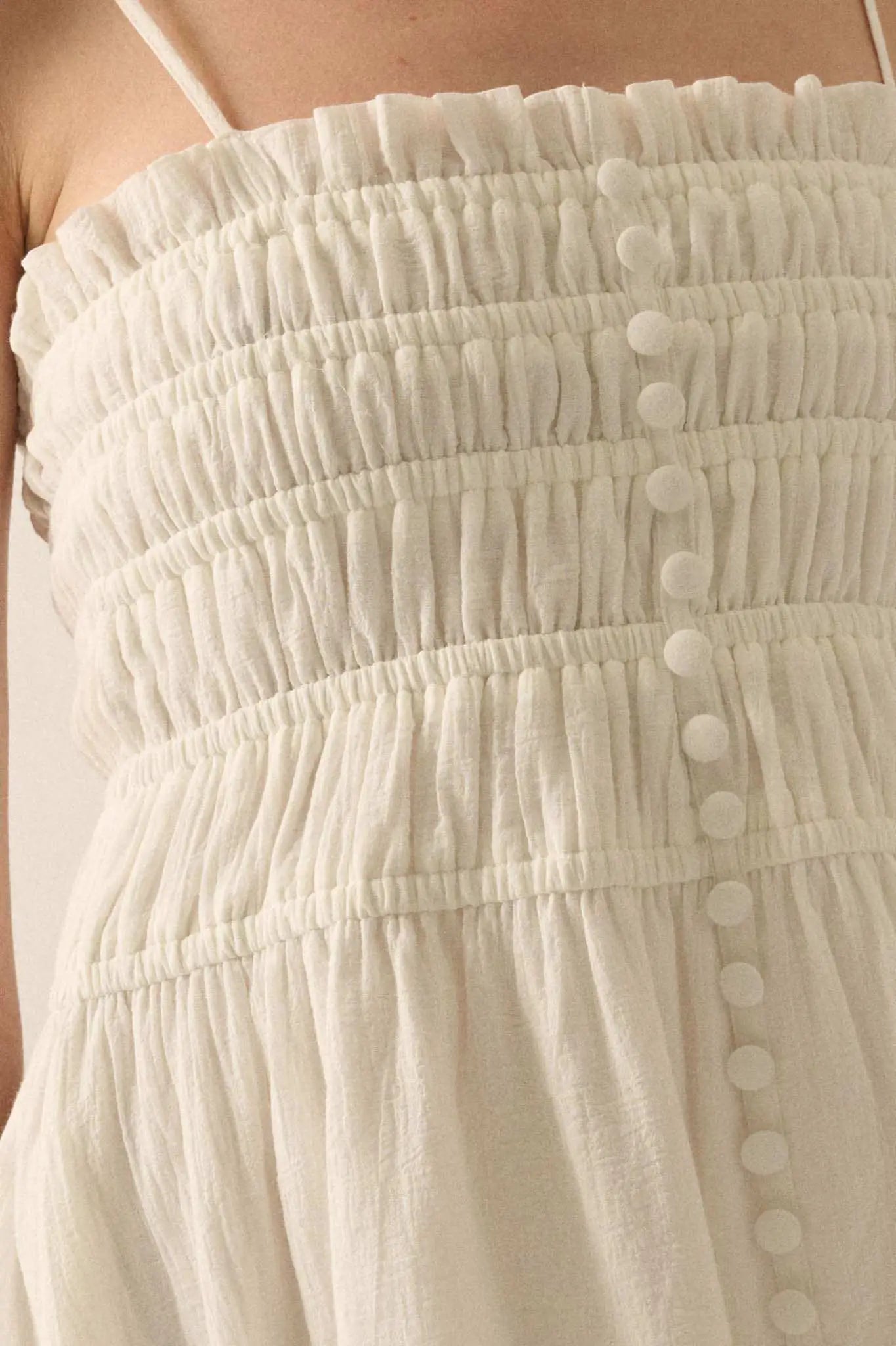 - Smocked bodice.