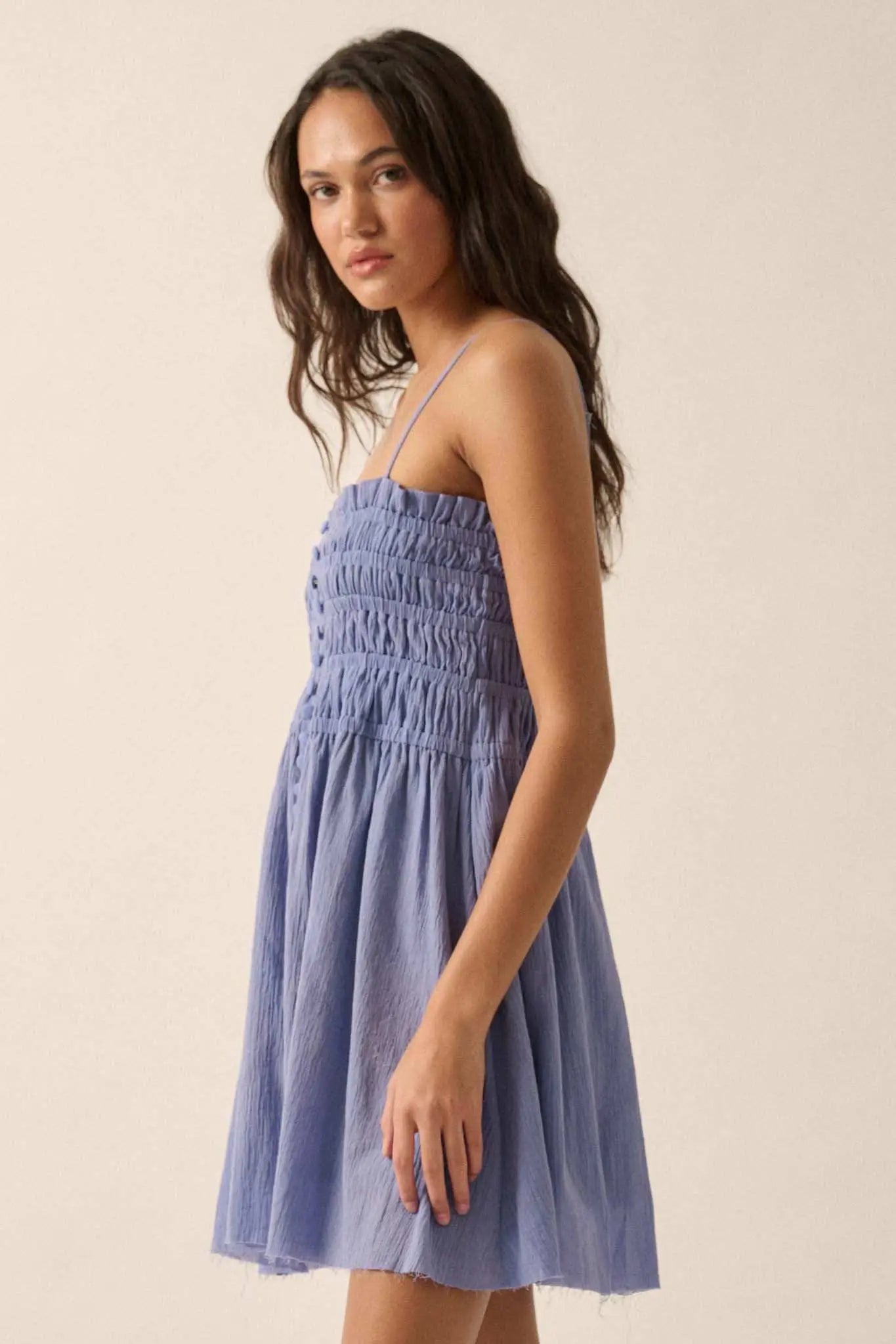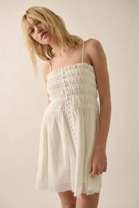 Catching Clouds Smocked Crinkle Cotton Mini Dress