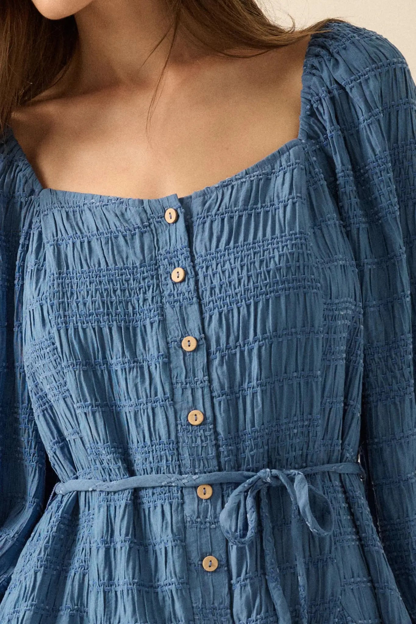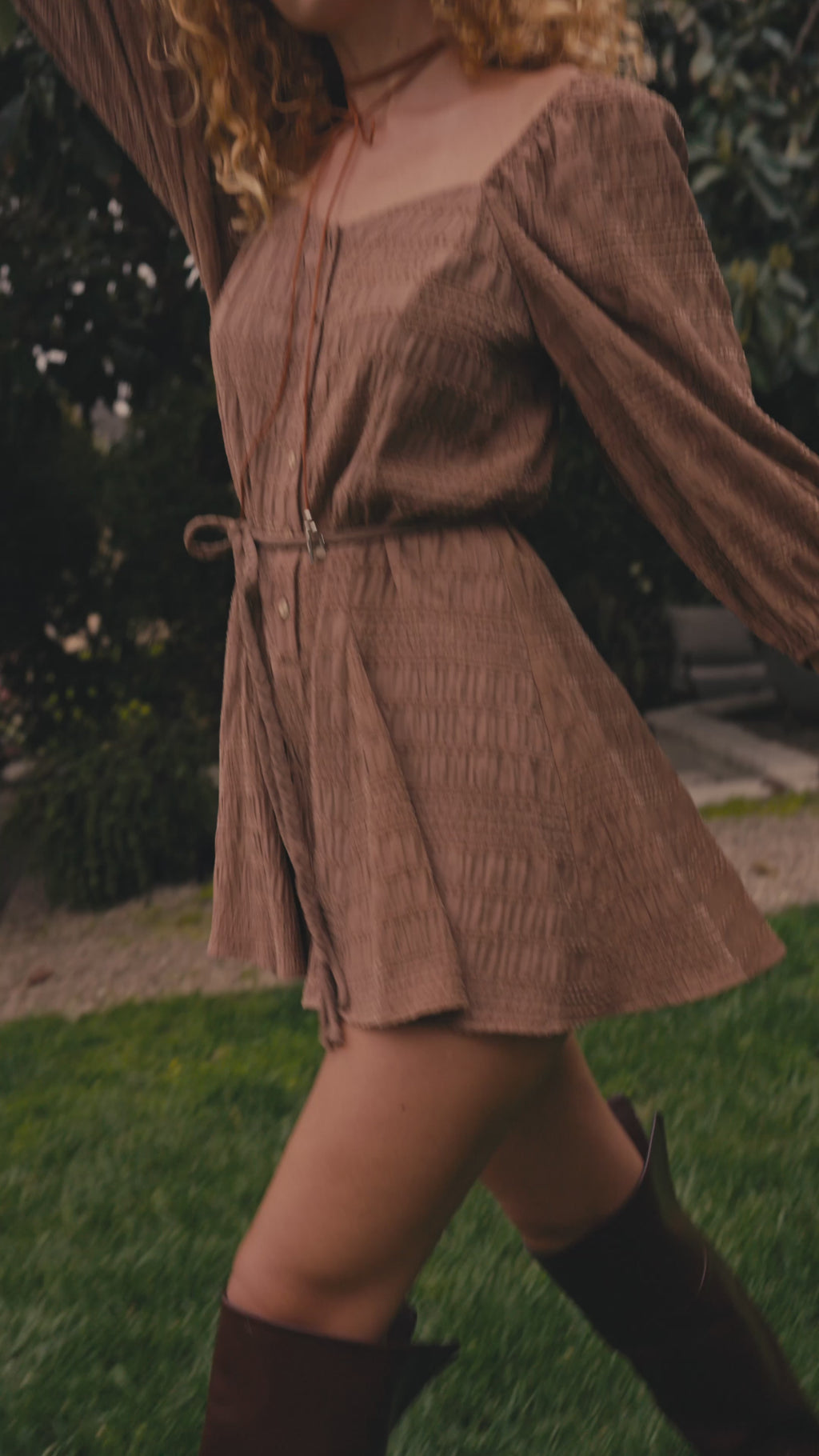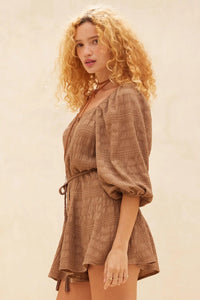 Smocked Bubble-Sleeve Belted Romper - ShopPromesa
