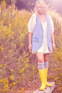 - Solid denim vest.