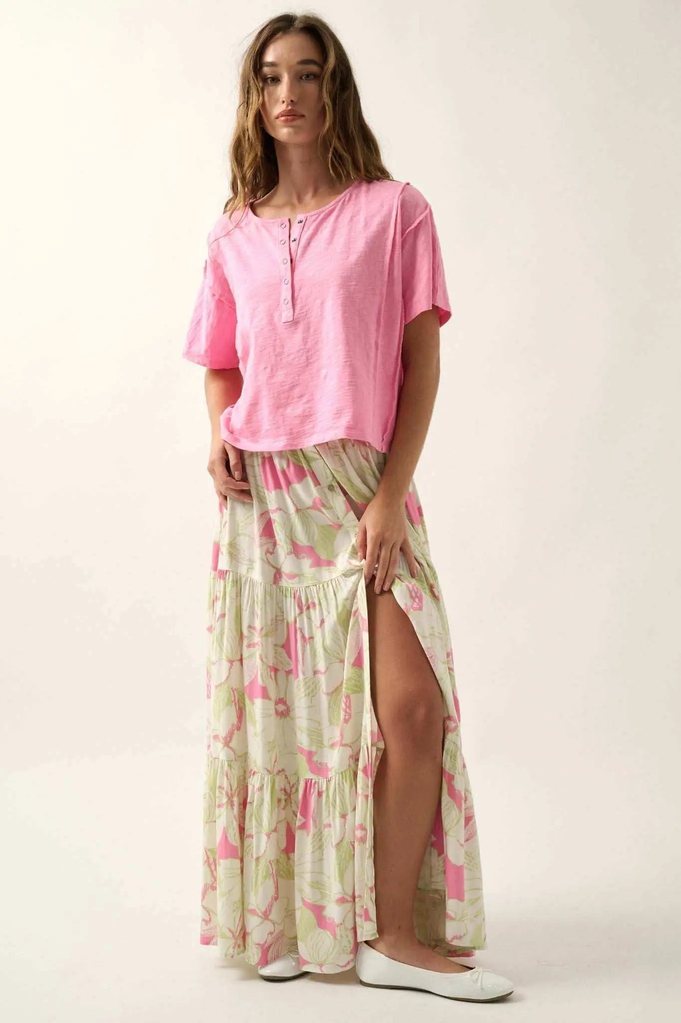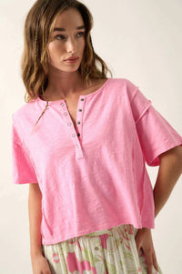 Easy Fit Vintage-Wash Slub Cotton Henley Tee - ShopPromesa