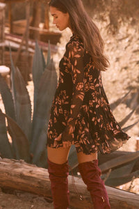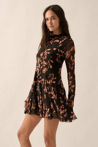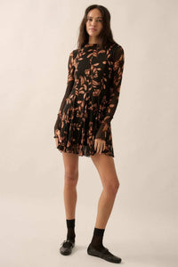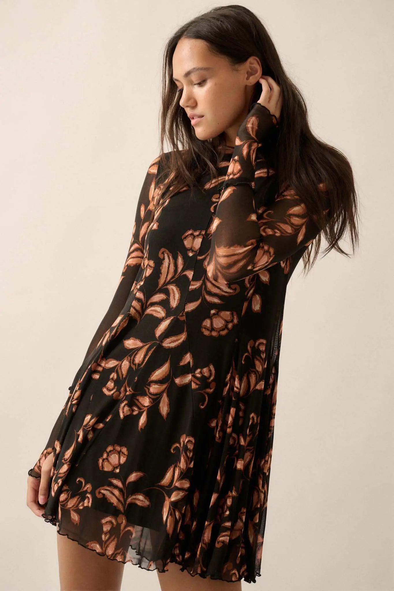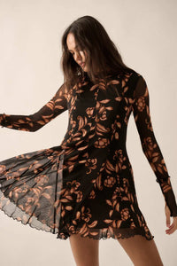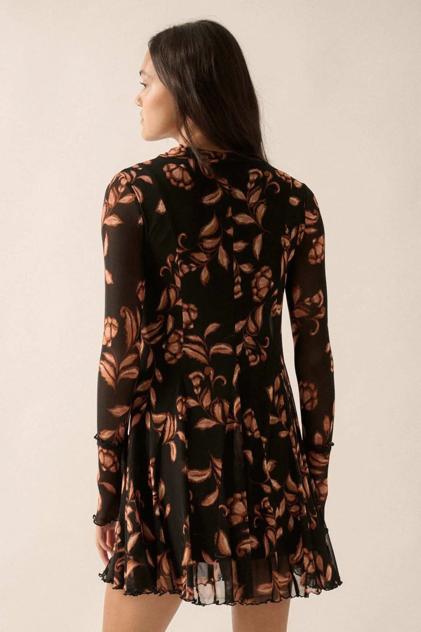 Fall Fantasy Floral Mesh Babydoll Mini Dress