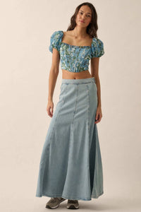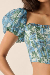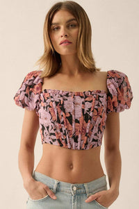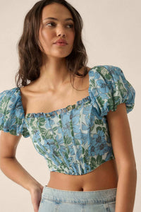 Fiji Feeling Floral Chiffon Puff-Sleeve Corset Top