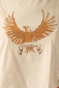 - Vintage-style eagle graphic print with "Freedom" text.