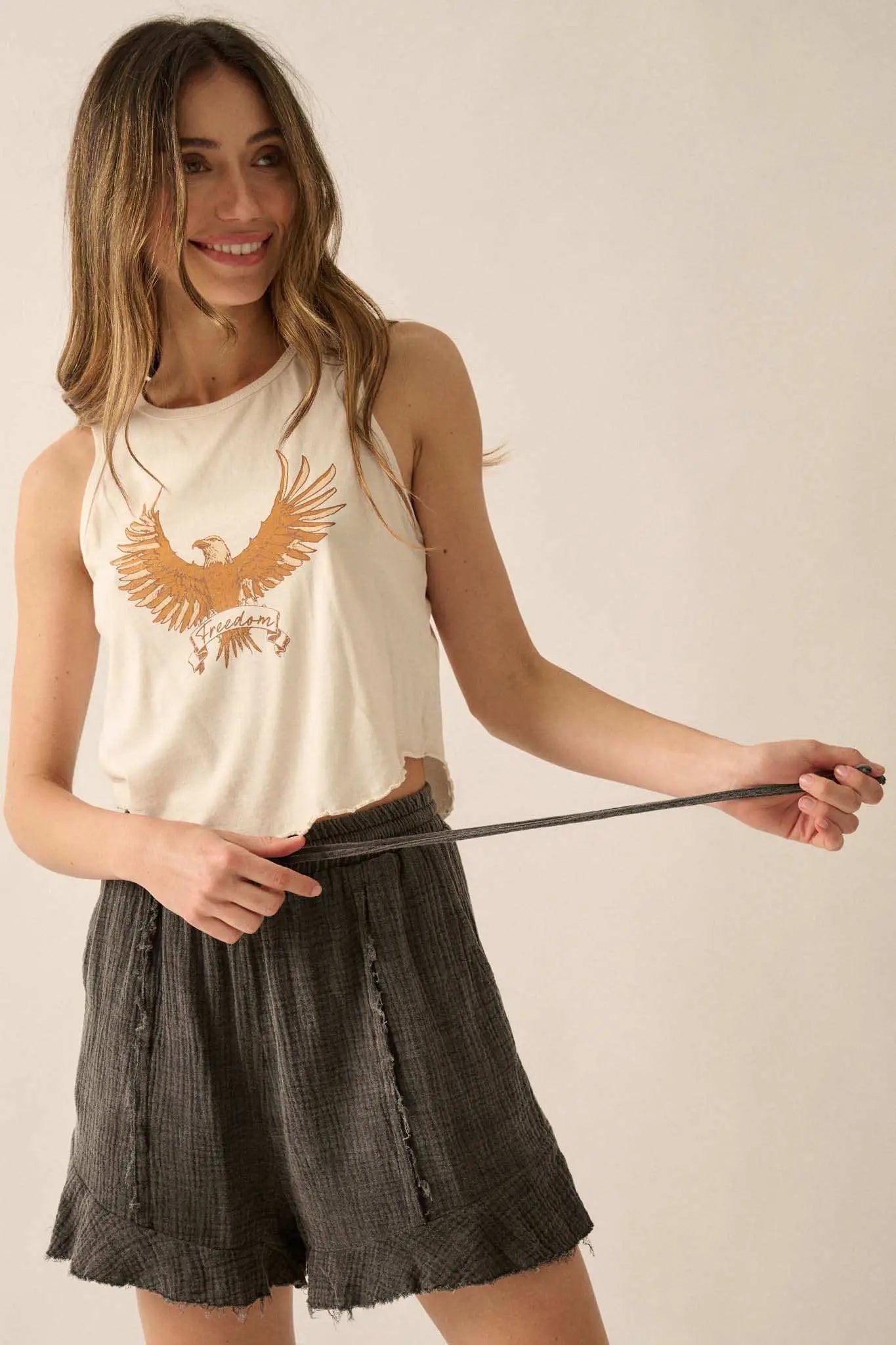 Free as an Eagle Lettuce-Edge Graphic Tank Top