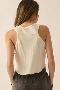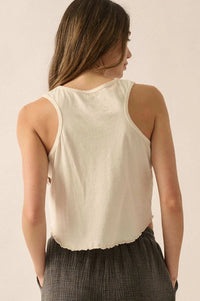 - Garment washed graphic tank top.