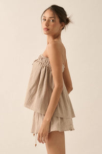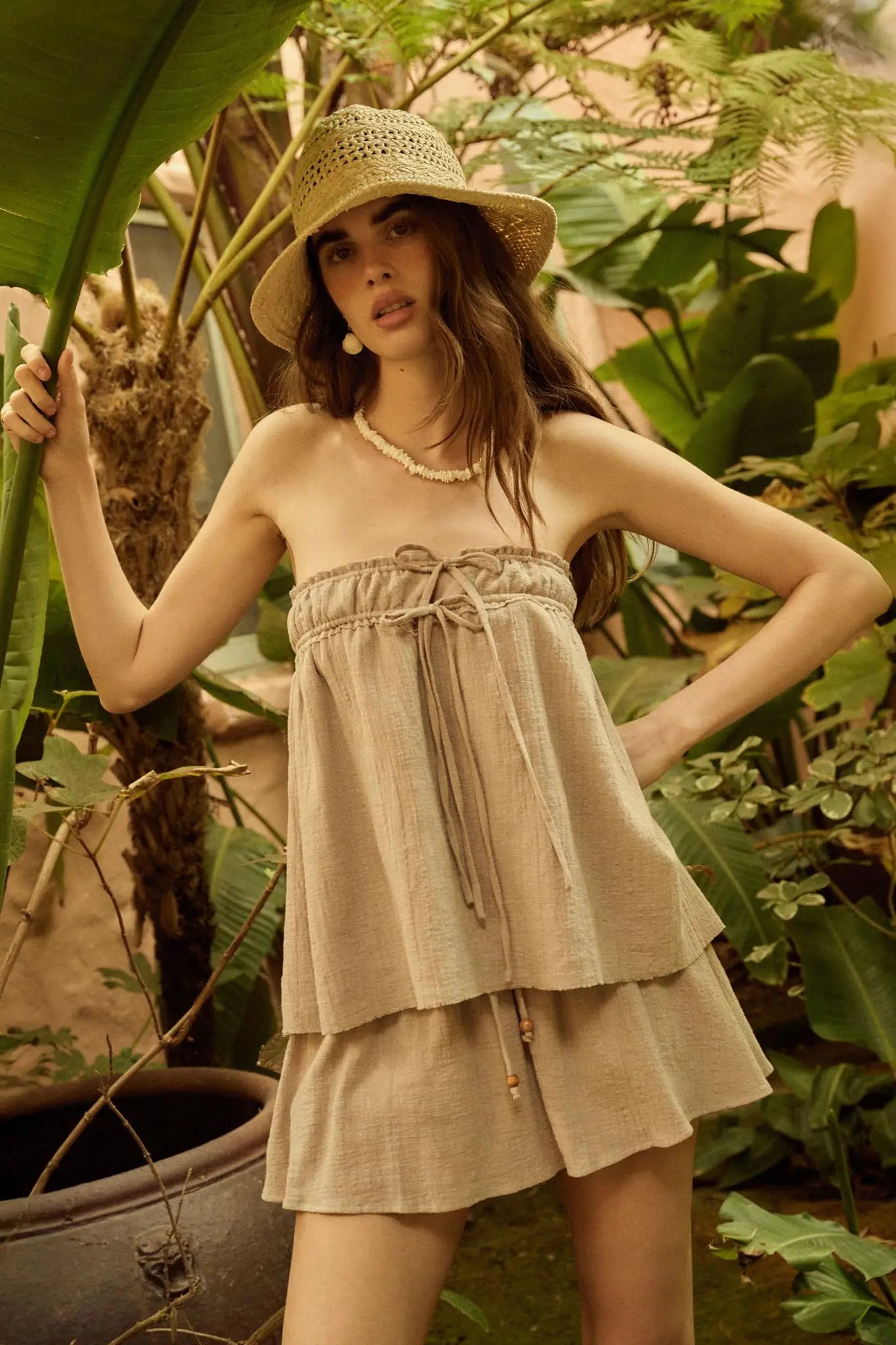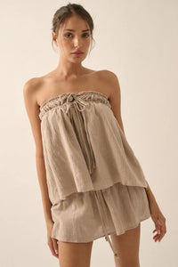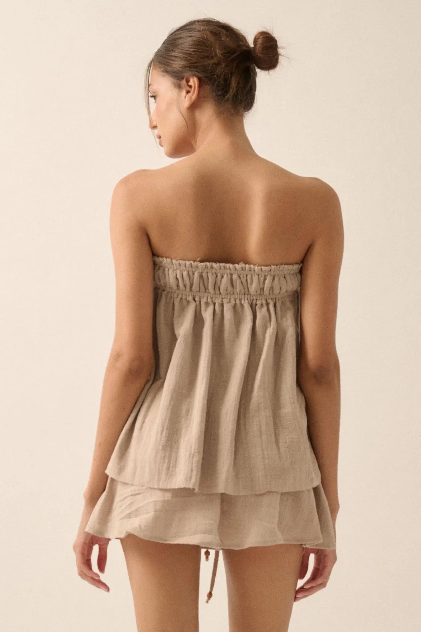 Fresh Breeze Textured Cotton Strapless Tunic Top