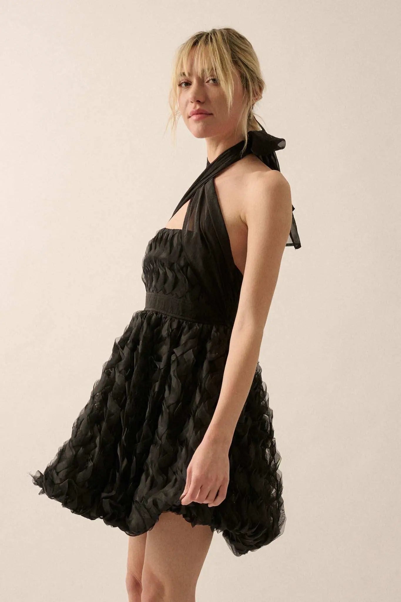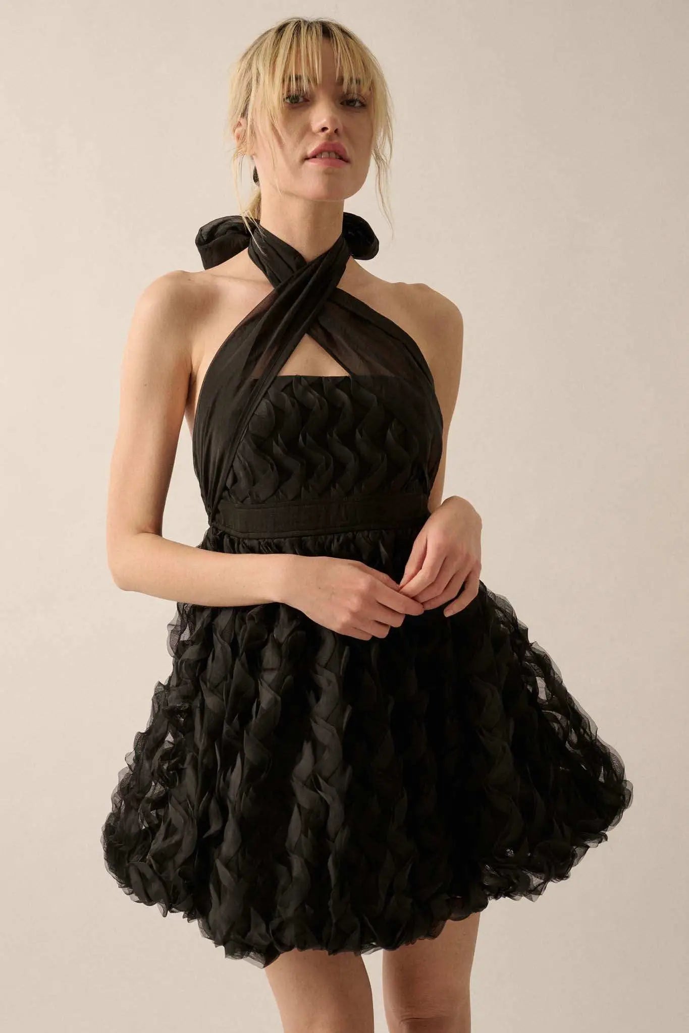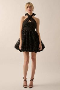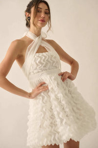 Frill Factor Cascade Ruffle Halter Mini Dress - ShopPromesa