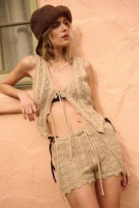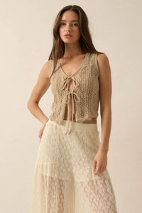 Get It Twisted Crochet Knit Tie-Front Tank Top