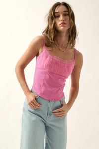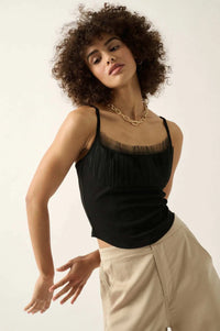 Gracefully Glam Pleated Tulle Ruffle Cami Top - ShopPromesa