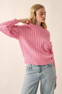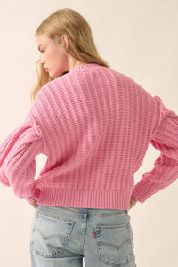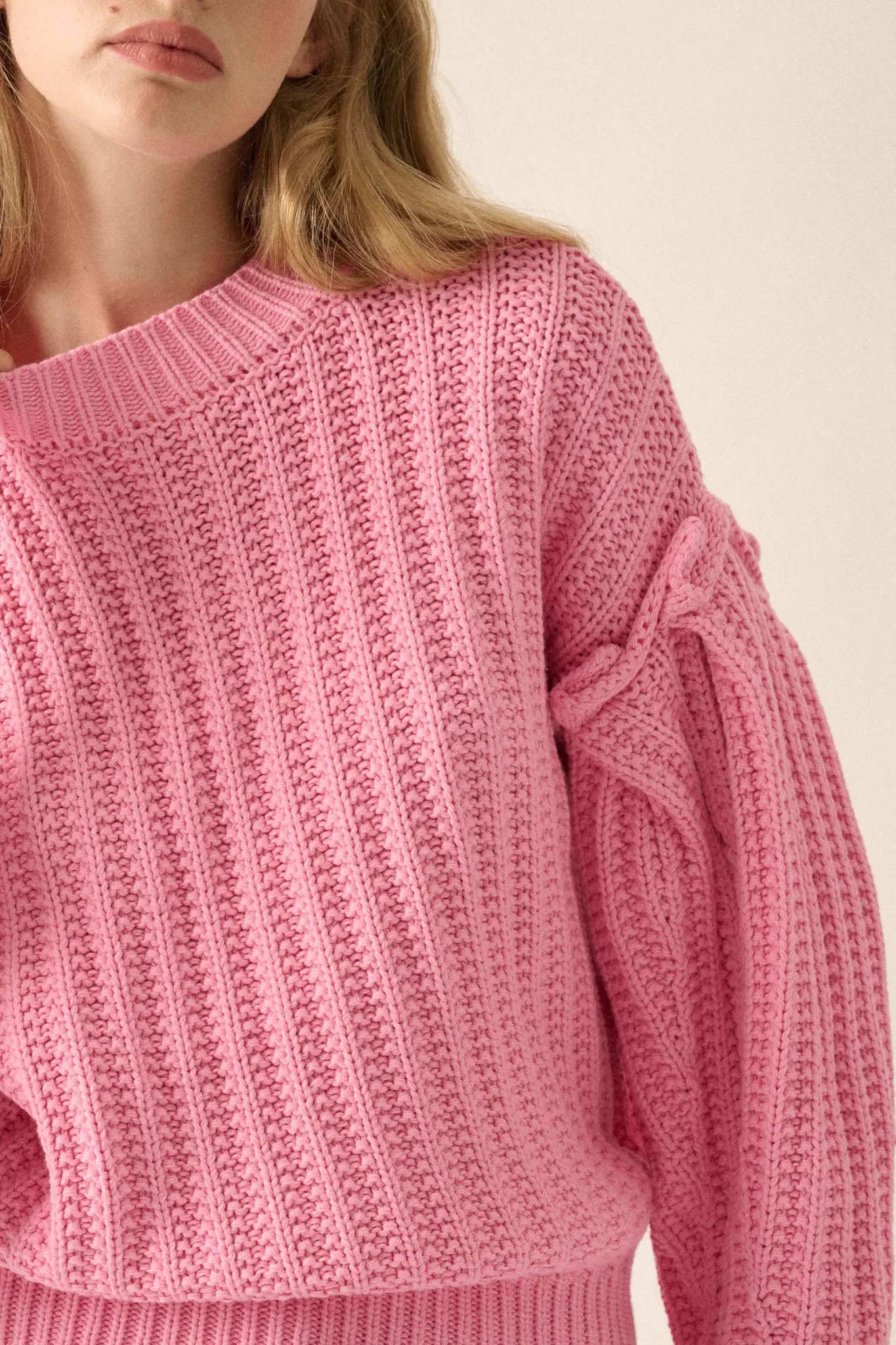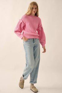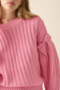 Gracious Heart Chunky Knit Pleated-Sleeve Sweater