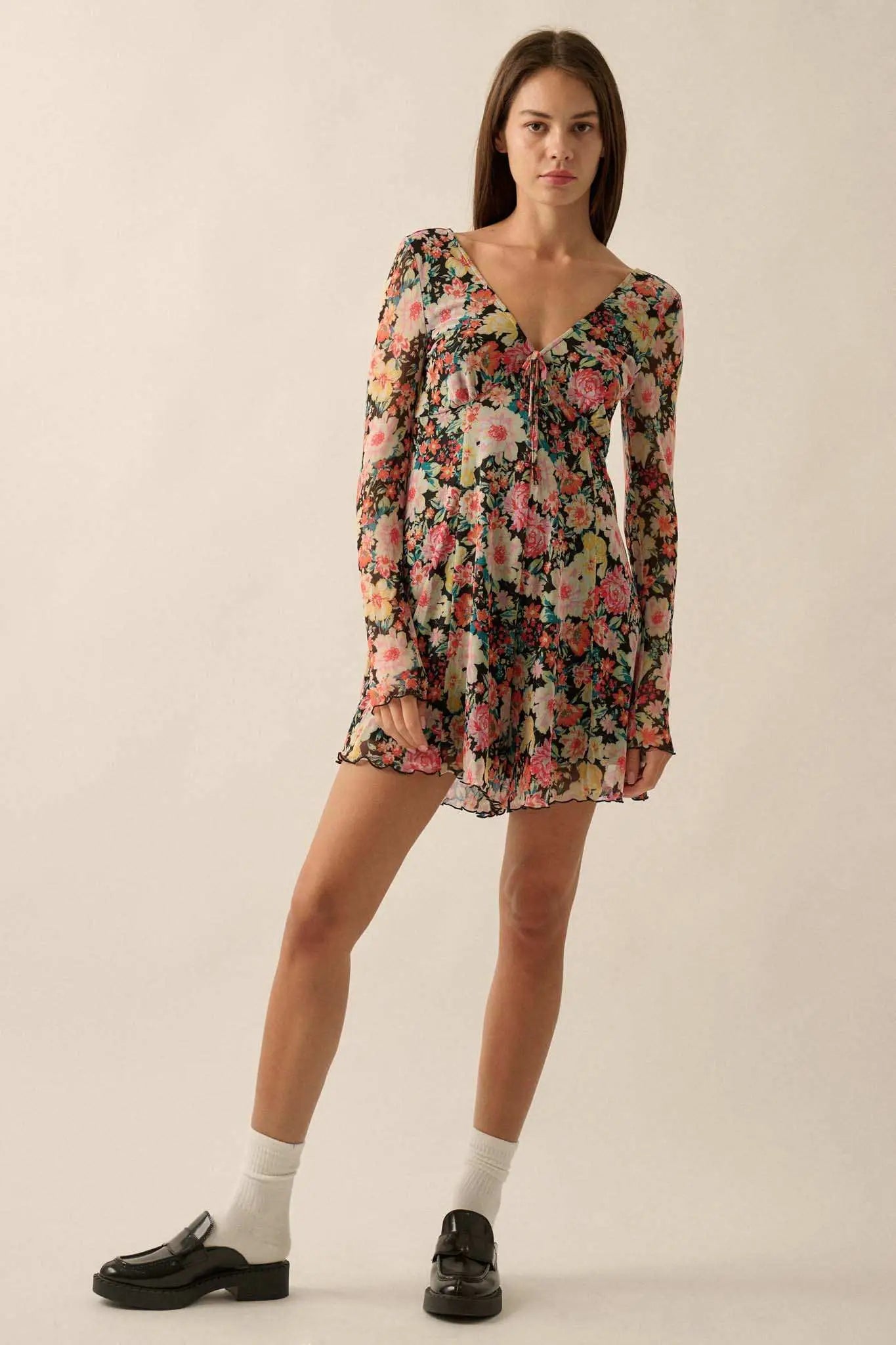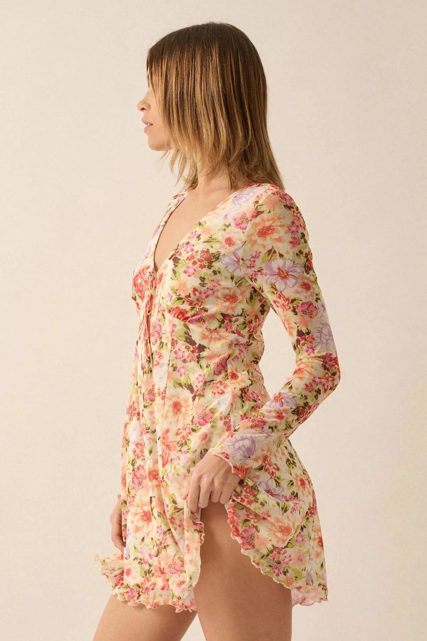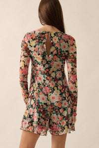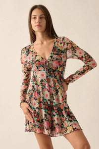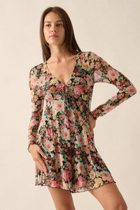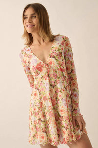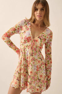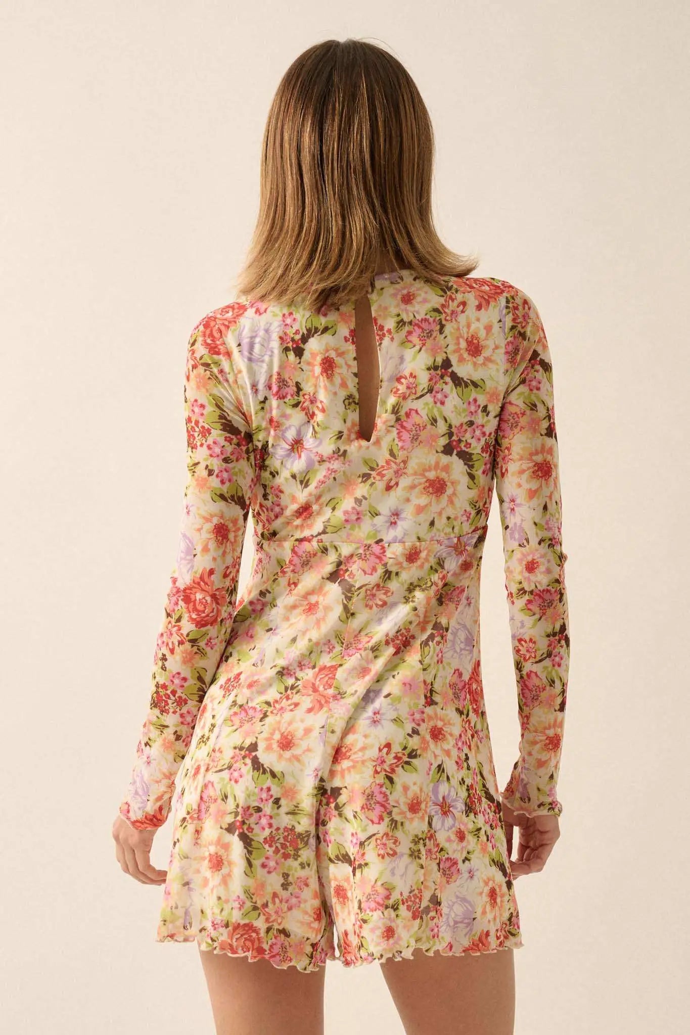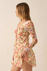 Growing Wild Floral-Print Mesh Long-Sleeve Romper