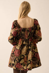 Haute Harvest Floral Tapestry Babydoll Mini Dress